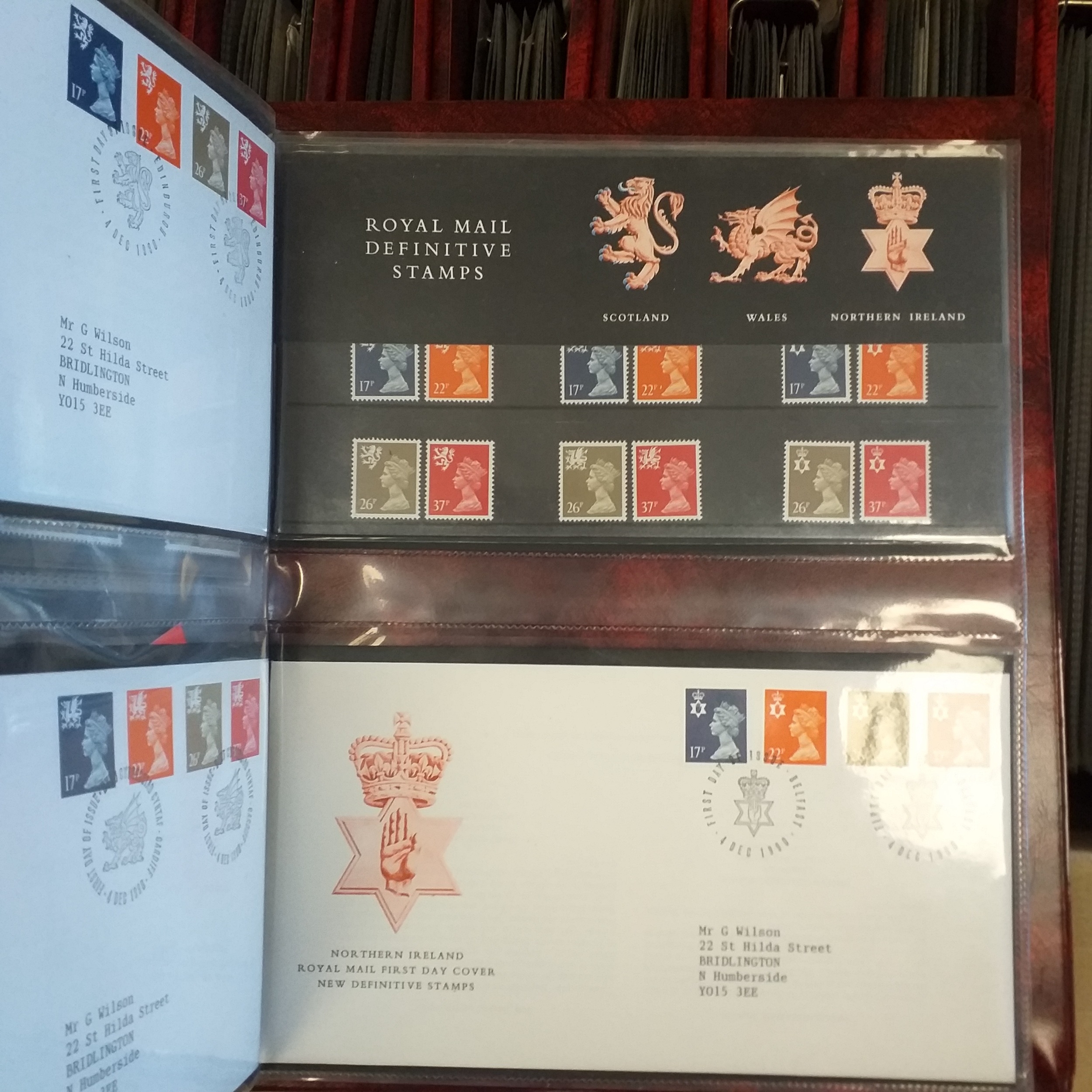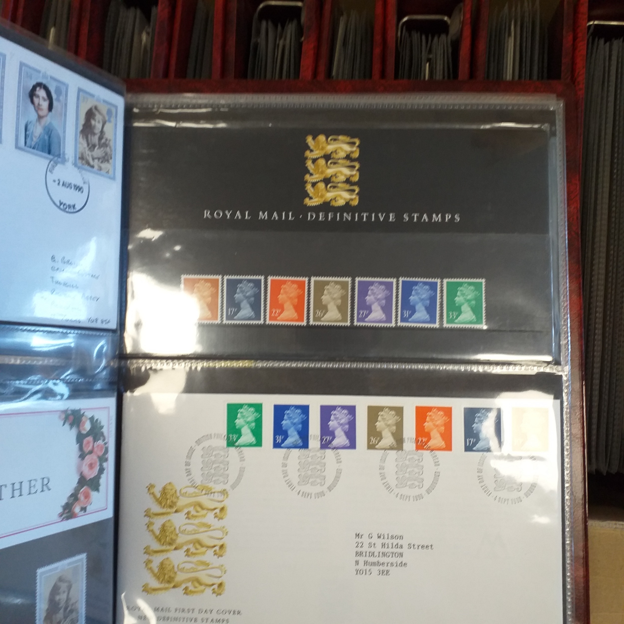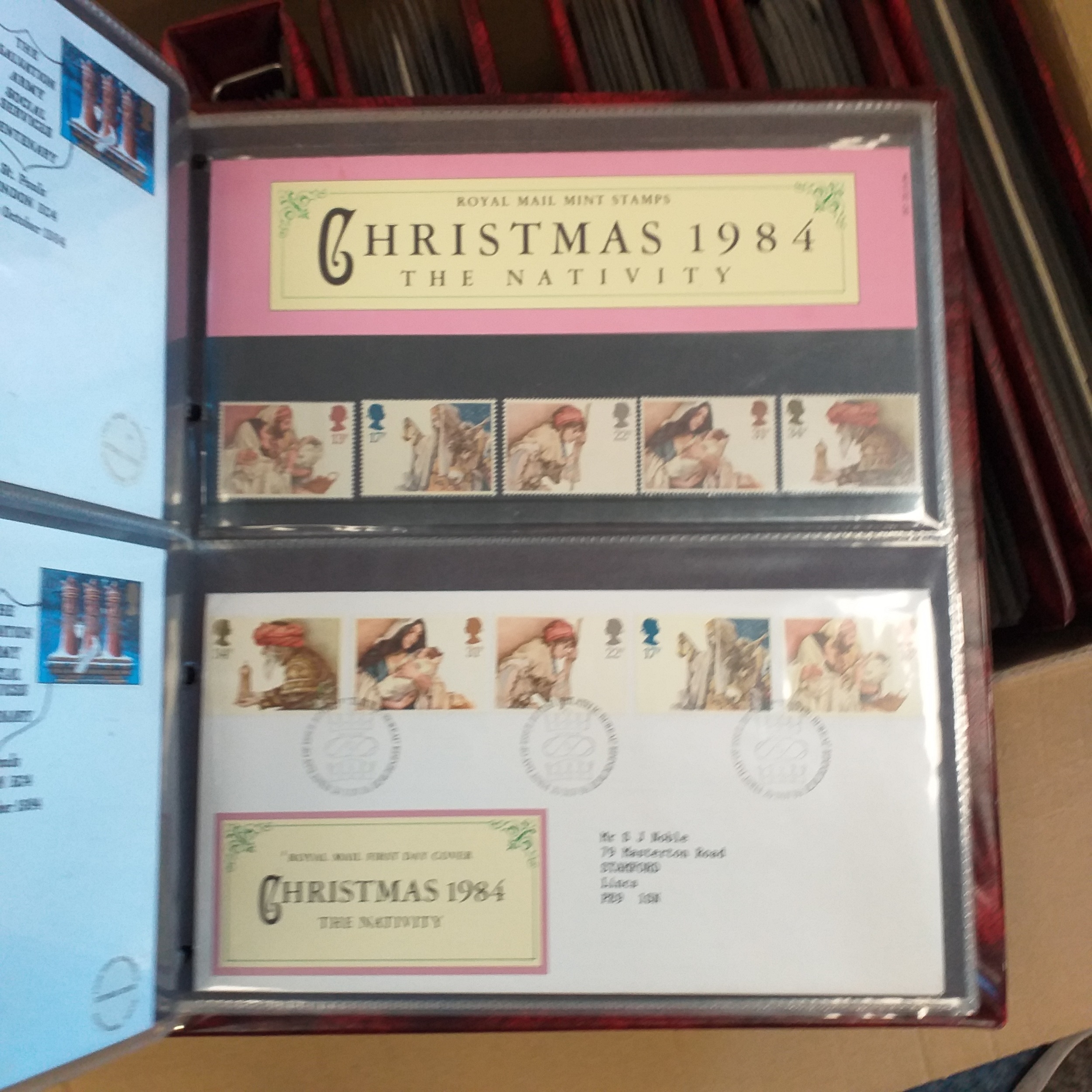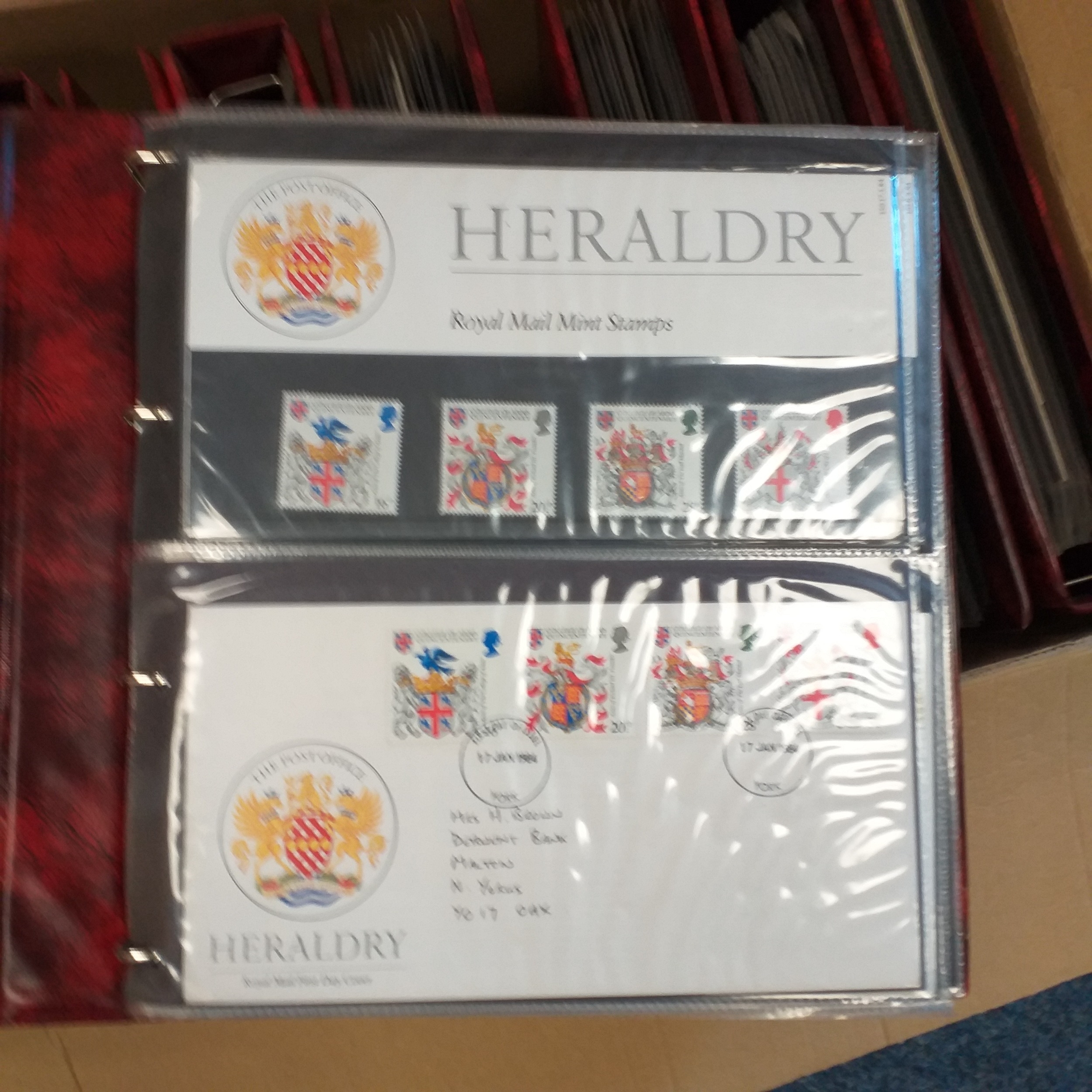 GB FDC and presentation pack collection 1971 to 1990 in 13 Kestrel cover albums, includes Machin issues and booklets also includes a small collection of Benham covers depicting military themes. High Cat value.