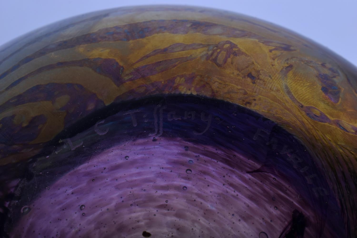 A CHARMING LOUIS COMFORT TIFFANY FAVRILLE GLASS BOWL. 15 cm diameter.
