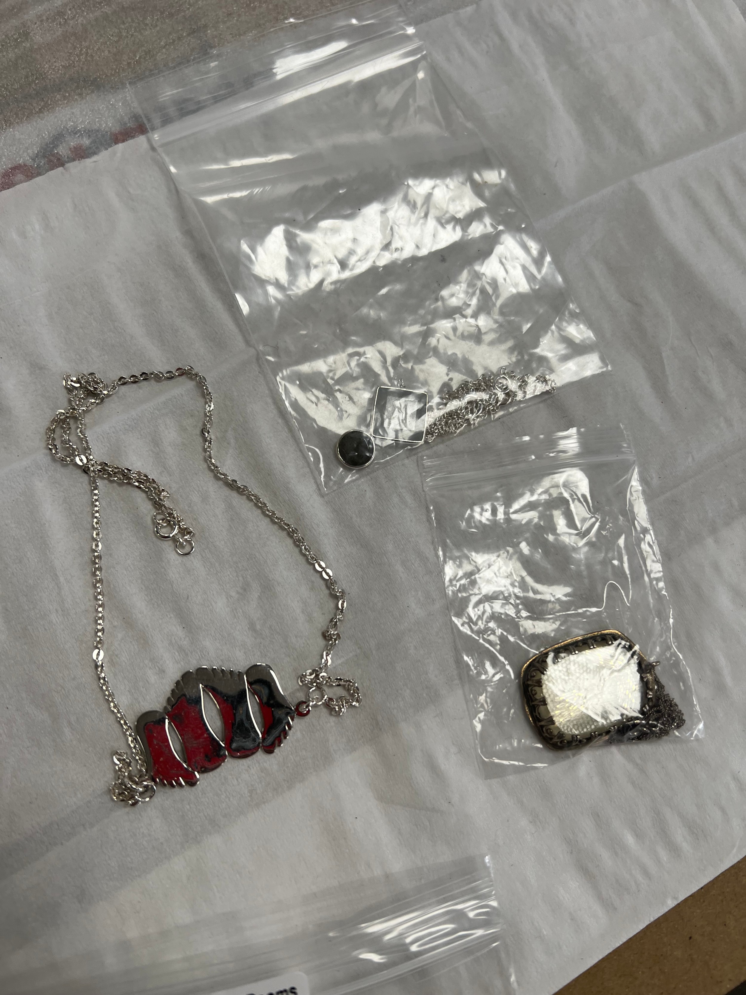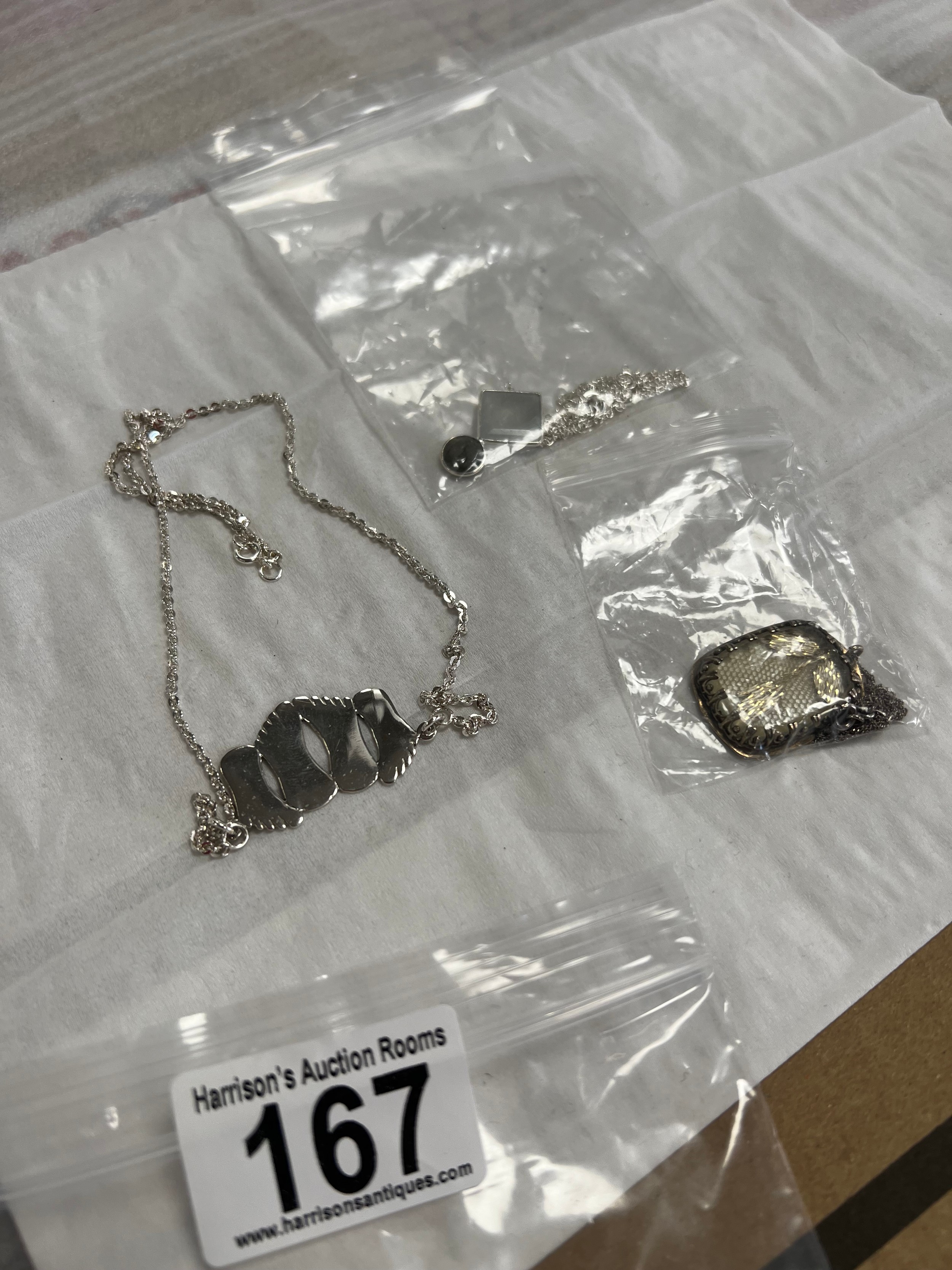 3 Silver pendants on chains