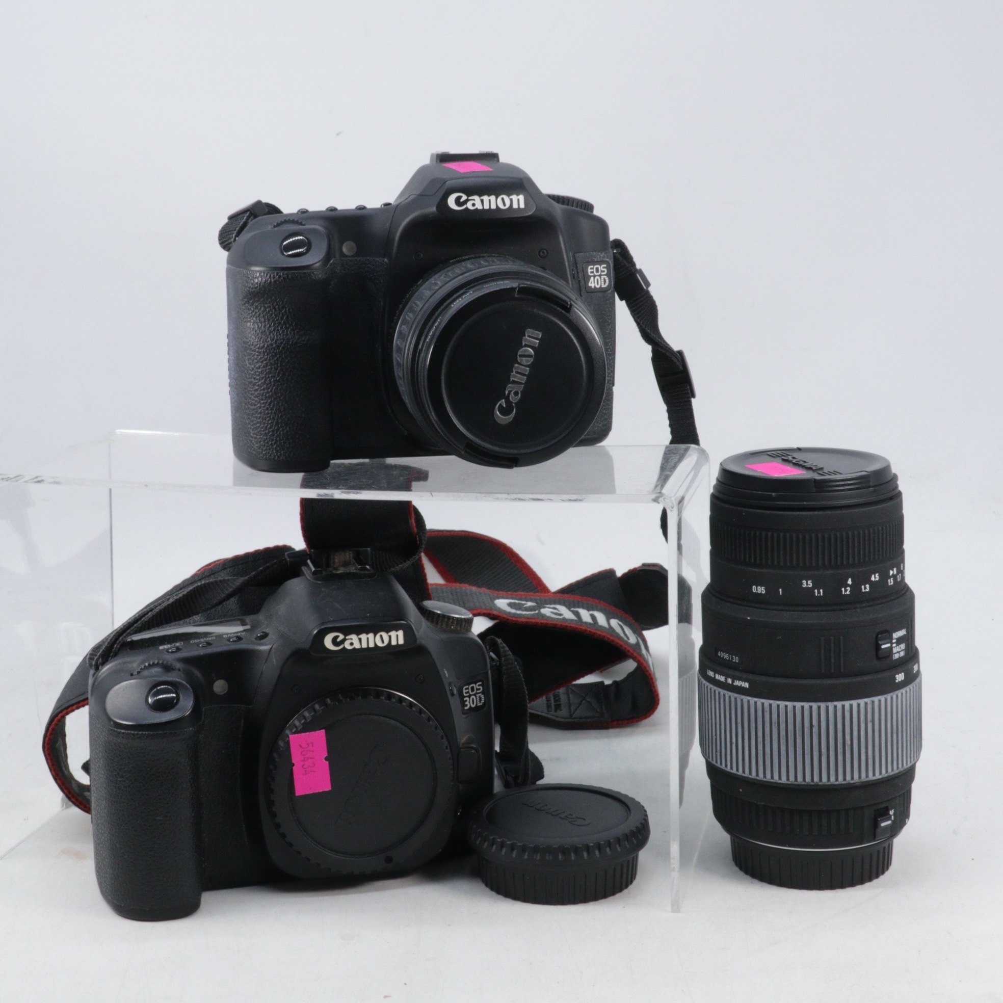 Canon Eos 40d together with a 30d boby. 18-55mm lens, sigma 79-300mm filters, carry bag etc