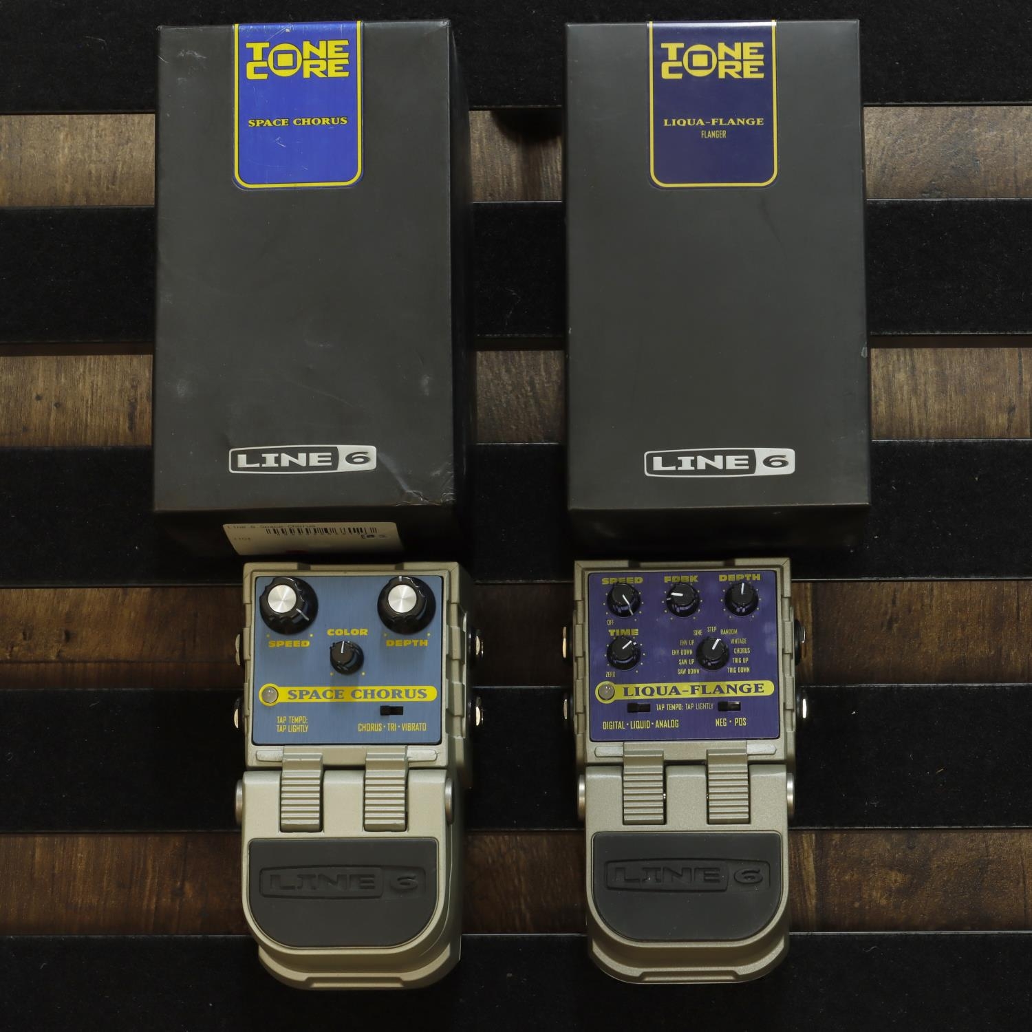 Line 6 Tone Core Space Chorus guitar pedal, boxed; together with a Line 6 Tone Core Liqua-Flange flanger guitar pedal, boxed (2)