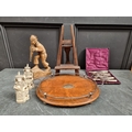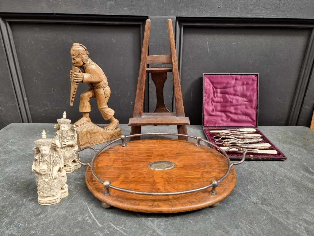 A mixed lot, to include a small oak and electroplate mounted tray, 44.5cm wide. (6)