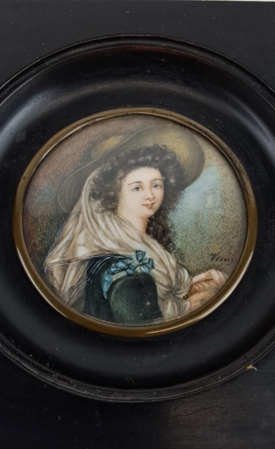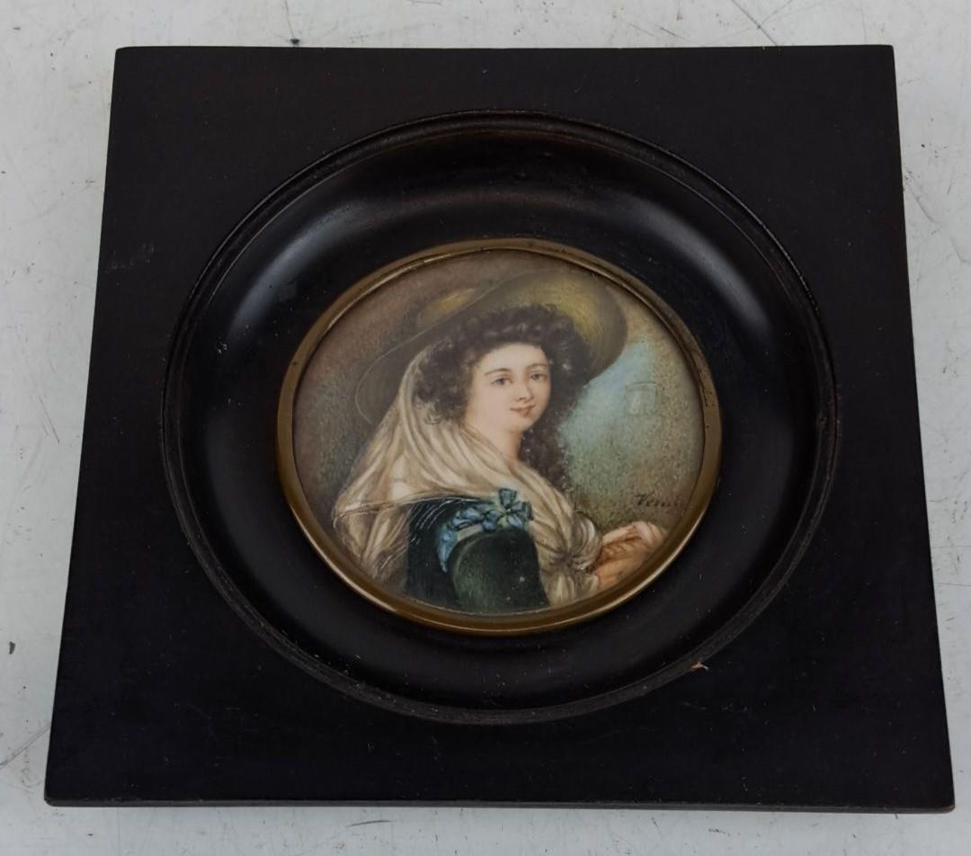 Antique miniature watercolour of a lady, signed "Vince"