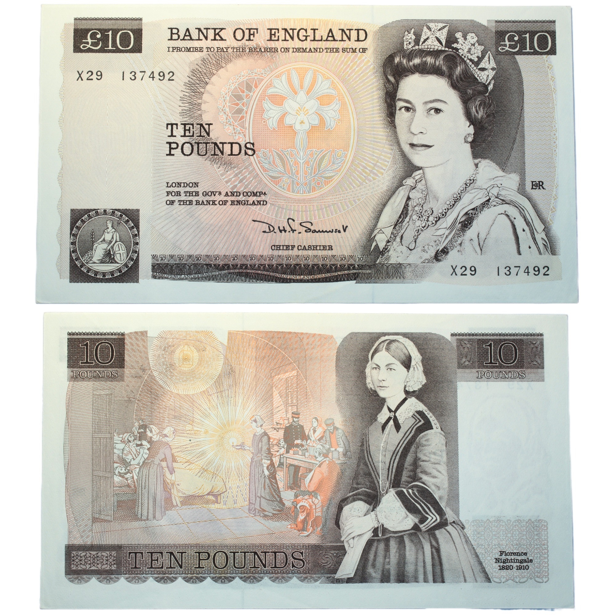Bank of England (4) Ten Pounds J.B. Page, D.H.F. Somerset, G.M. Gill, and G.E.A. Kentfield, prefixes N05, X29, EN53 and KN01 first run, (Dugg. B330, B346, B354 and B360). Uncirculated