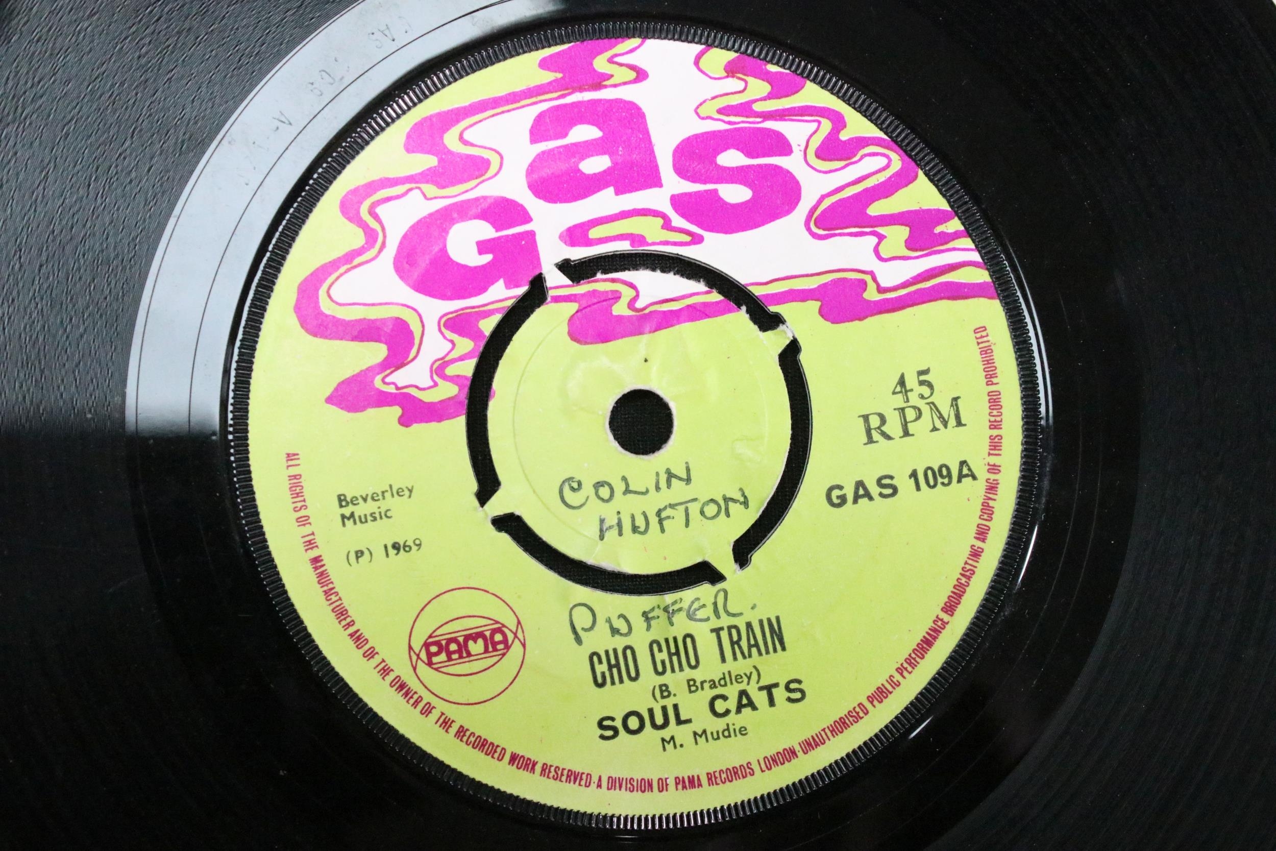 Vinyl - 4 Original 1st pressing UK pressing Reggae / Ska 7” singles to include: Soul Cats – Cho Cho Train (Gas Records - GAS 109), Glen Adams & The Reggae Boys / The Reggae Boys – Leaving On A Jet Plane / Phrases (Gas Records - GAS 141), Roland Alphonso – 1,000 Tons Of Megaton / Musical Resurrection (Gas Records - GAS 112), Busty Brown – A Broken Heart (Punch Records - PH 10). Condition VG+ overall with writing on labels