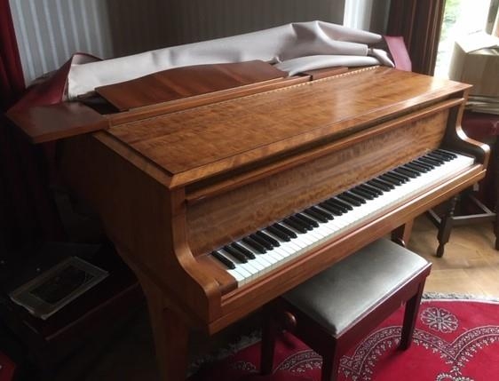 Welmar (c1967) A 4ft 7in grand piano in a mahogany case on square tapered legs; together with a stool. This instrument is sold with an Article 10 Certificate due to the use of ivory in the construction of the keyboard. Cert. No. 588912/01. AMENDMENT Is 4ft 10in.