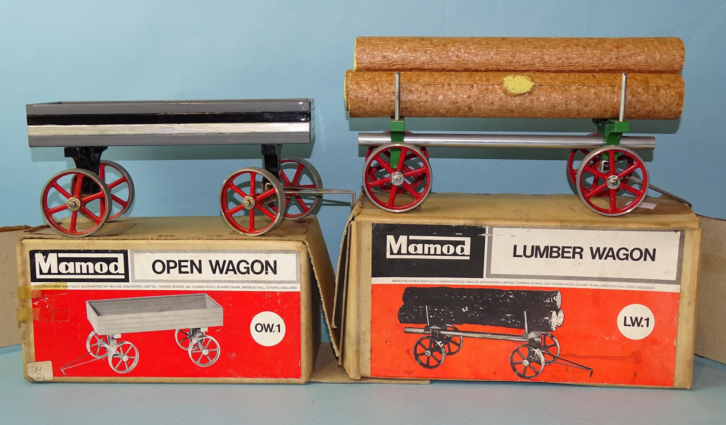 Mamod, Open Wagon OW1 and Lumber Wagon LW1, both boxed, (2).