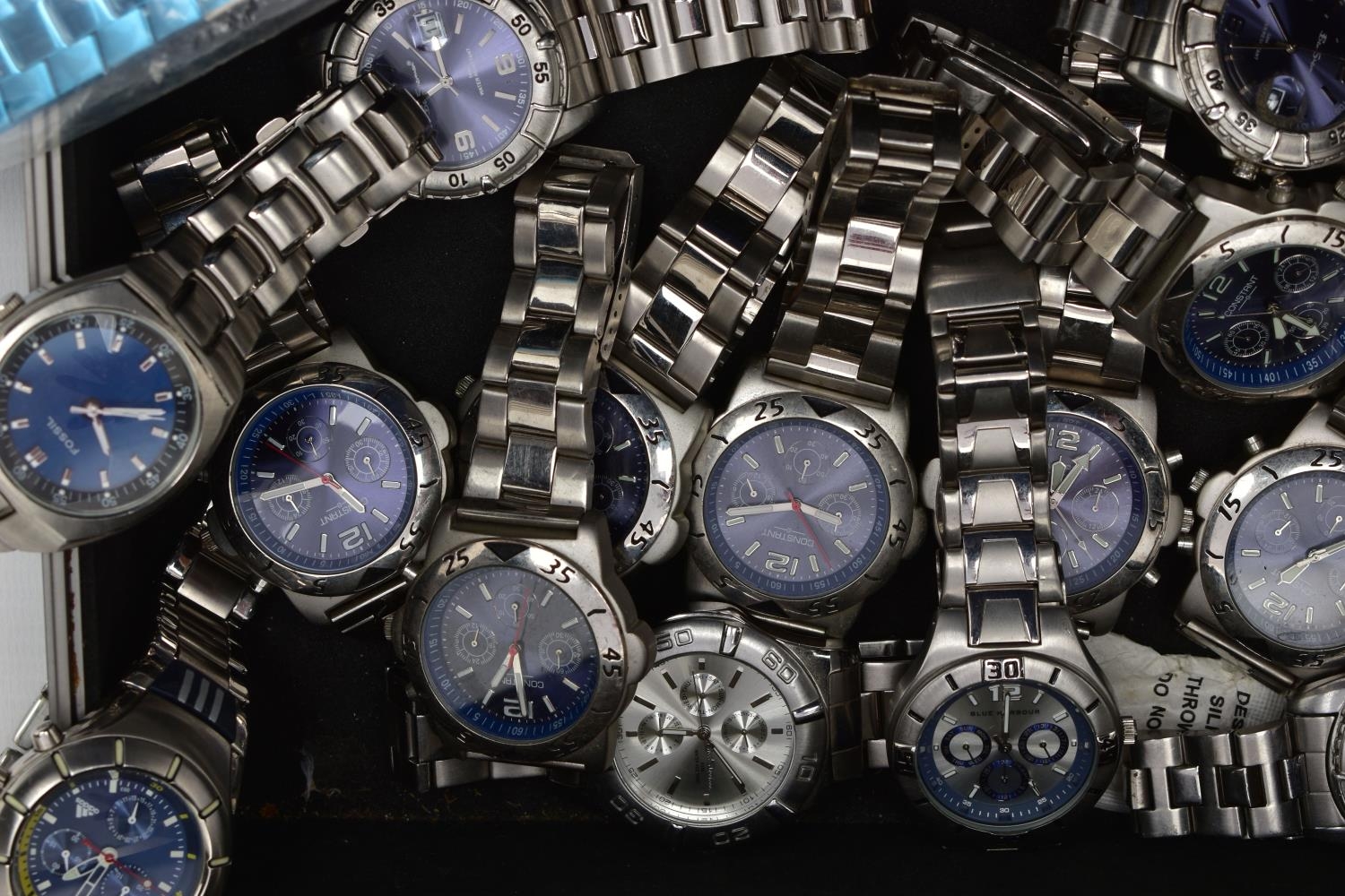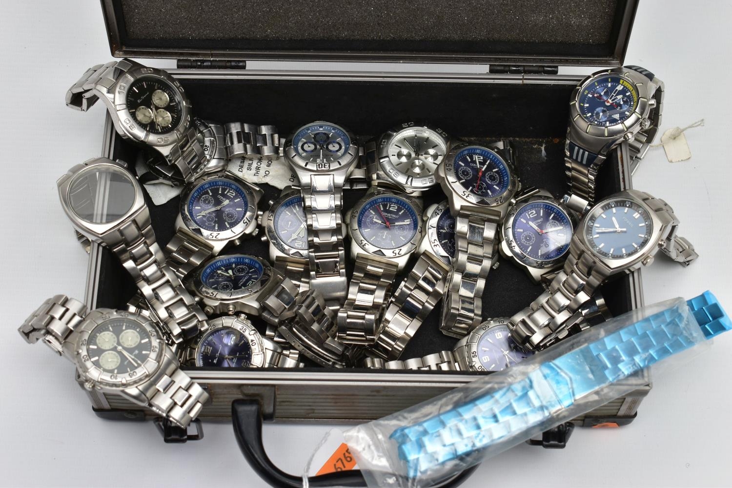 A BOX OF ASSORTED GENTS WRISTWATCHES, to include seven 'Constant' watches, six 'Ben Sherman' watches, three additional watches, names to include 'Addidas, Fossil and Blue Harbour' (condition report: currently not running, not tested)
