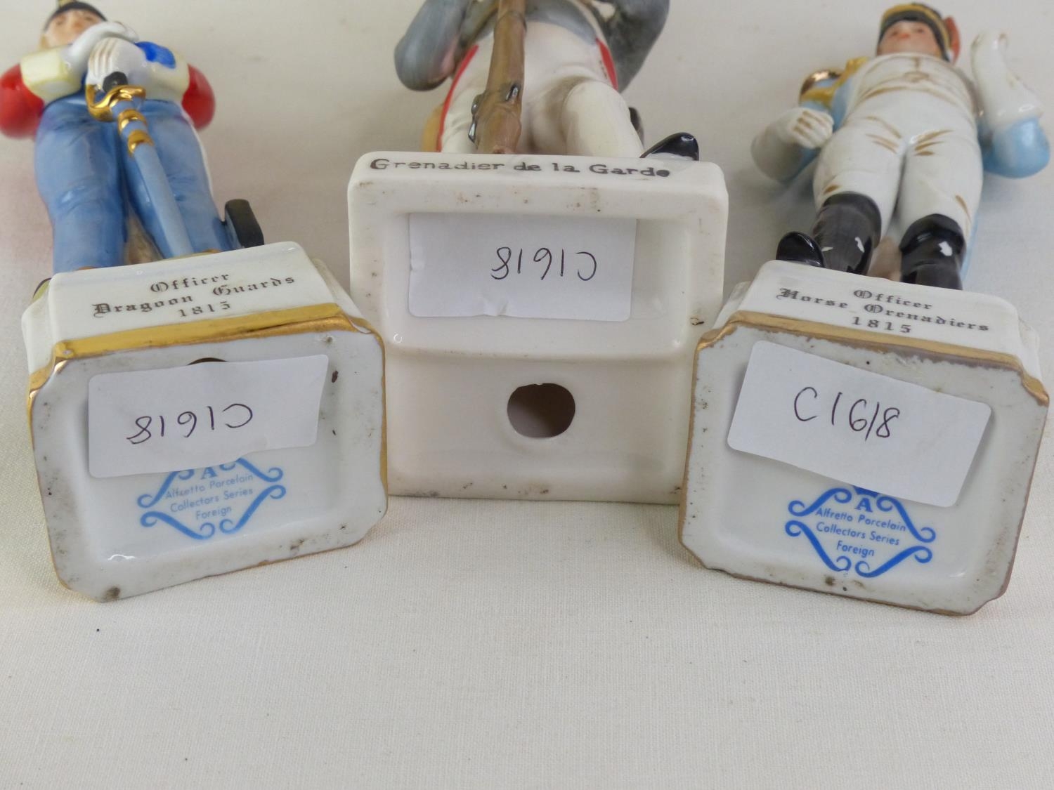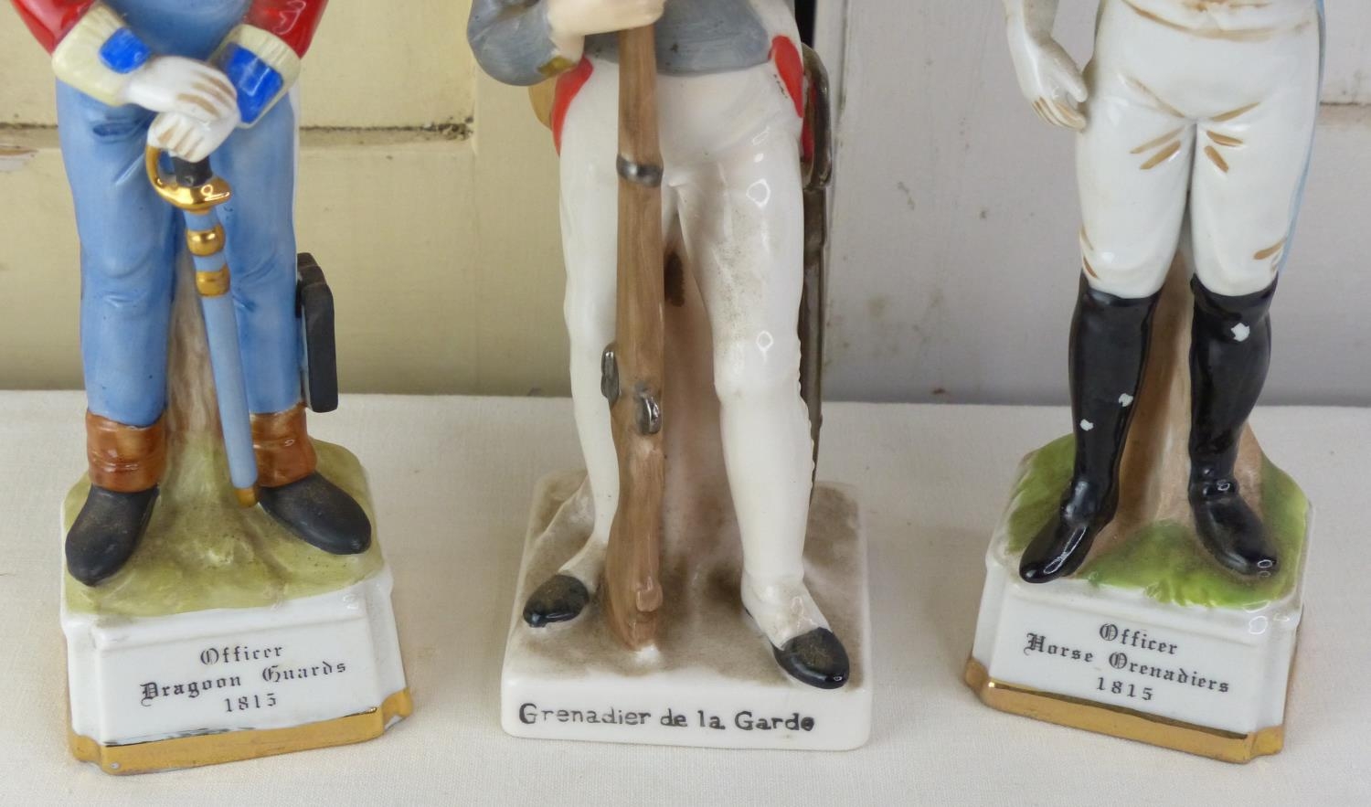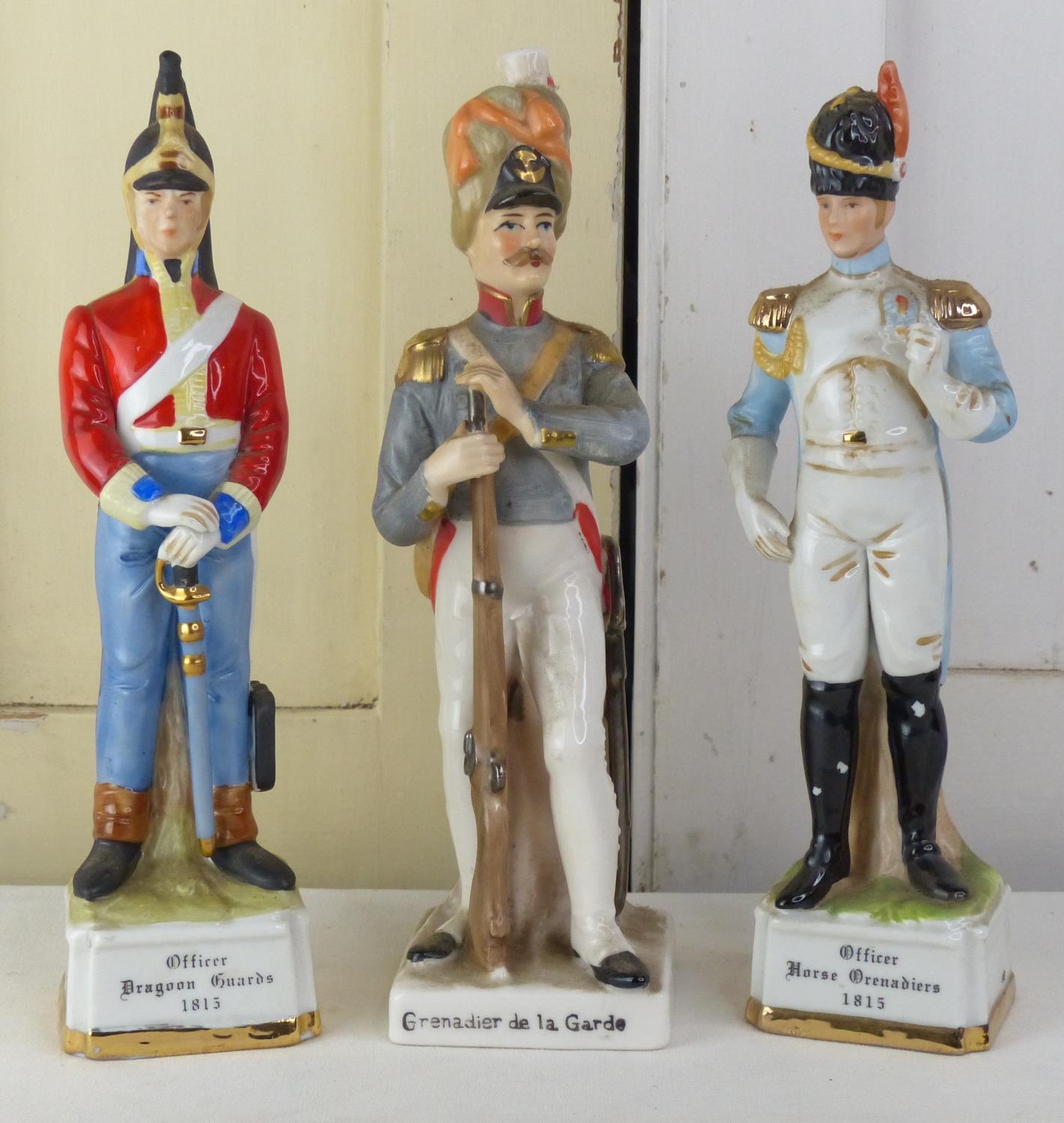 Three military figures - Officer Dragoon Guards 1813, Grenadier de la Garde and Officer Horse Grenadiers 1815, 21cm