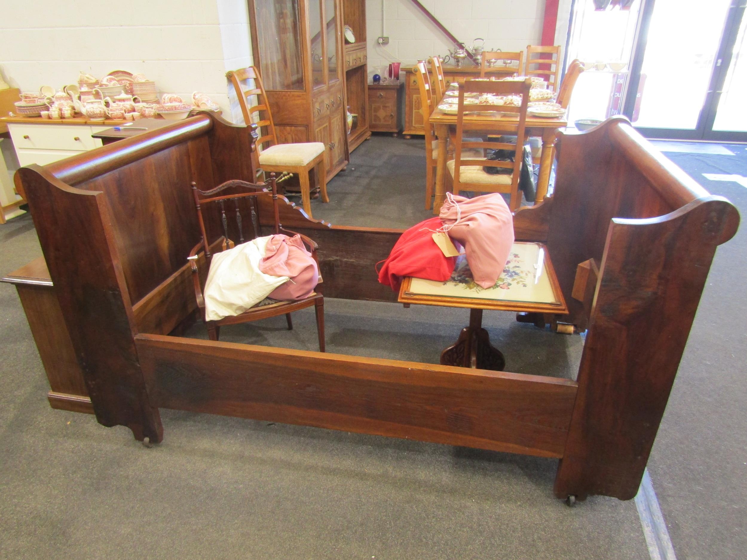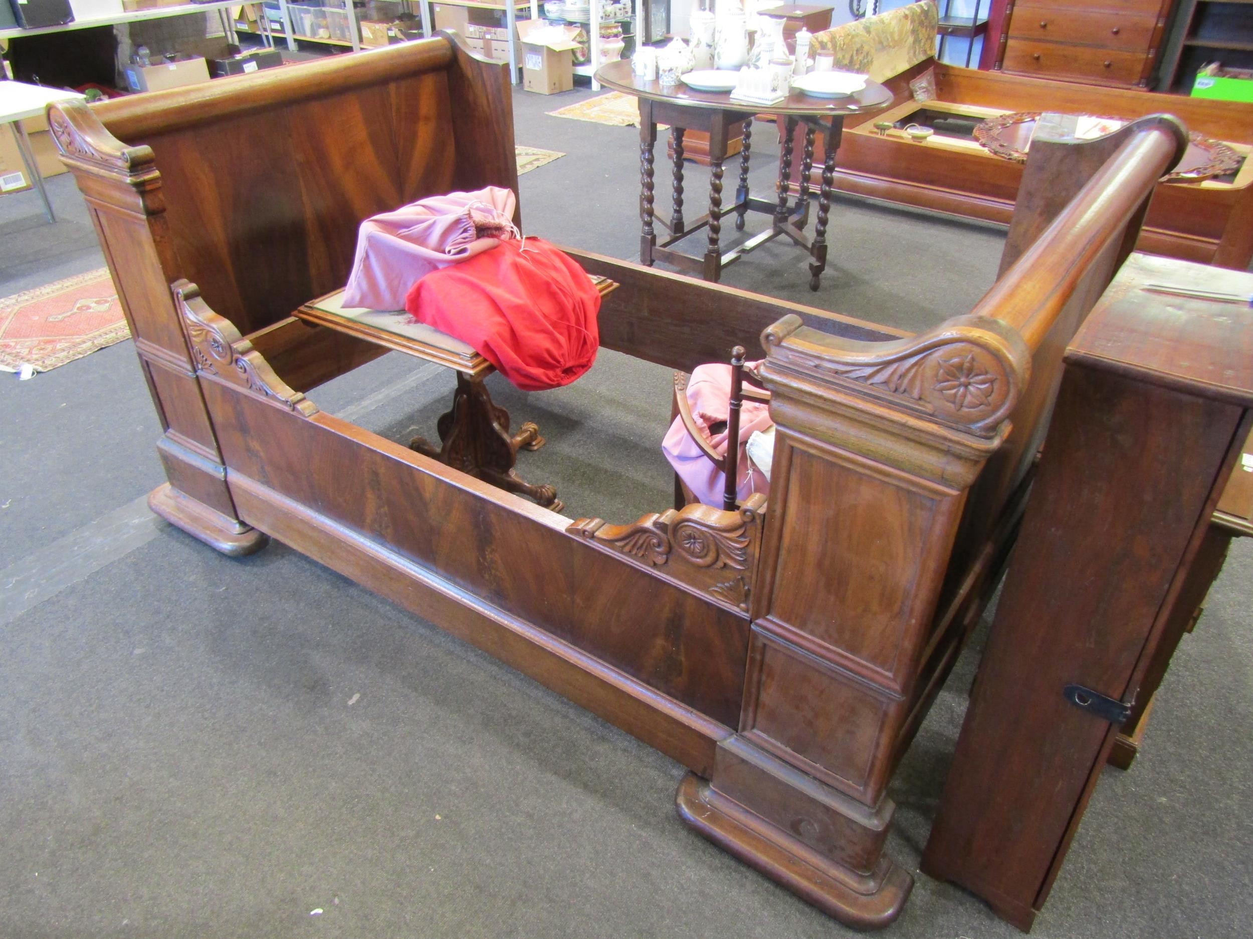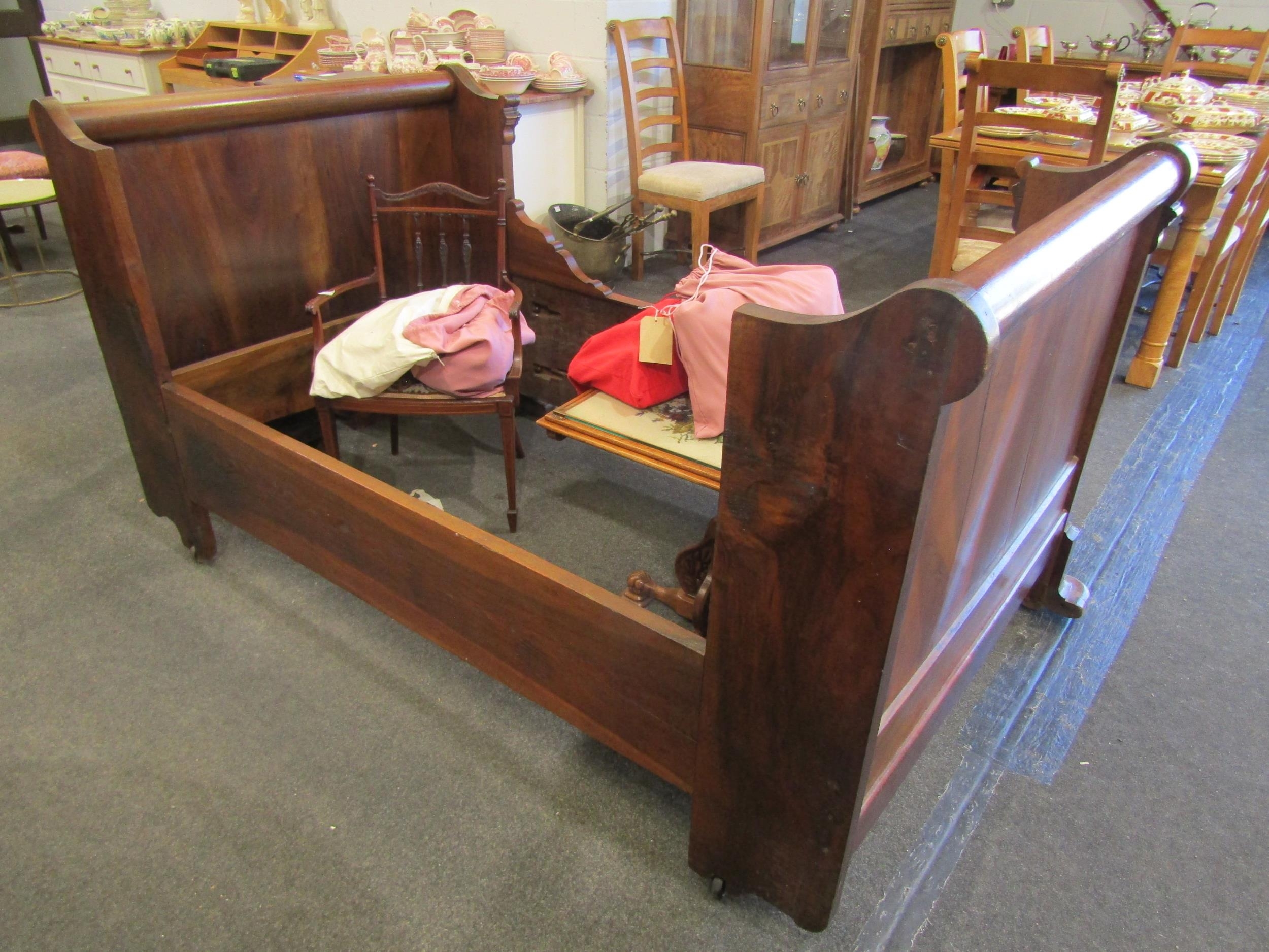 A late 19th/early 20th Century mahogany panelled sleigh bed, 194cm long x 112cm wide