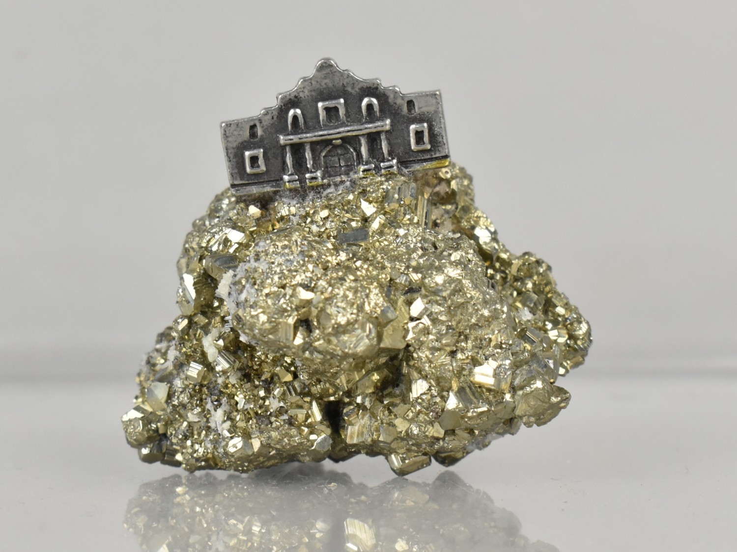 An 'Alamo' Souvenir, White Metal Study Mounted on Iron Pyrite Crystal, Stamped Verso, 4.1cms Tall
