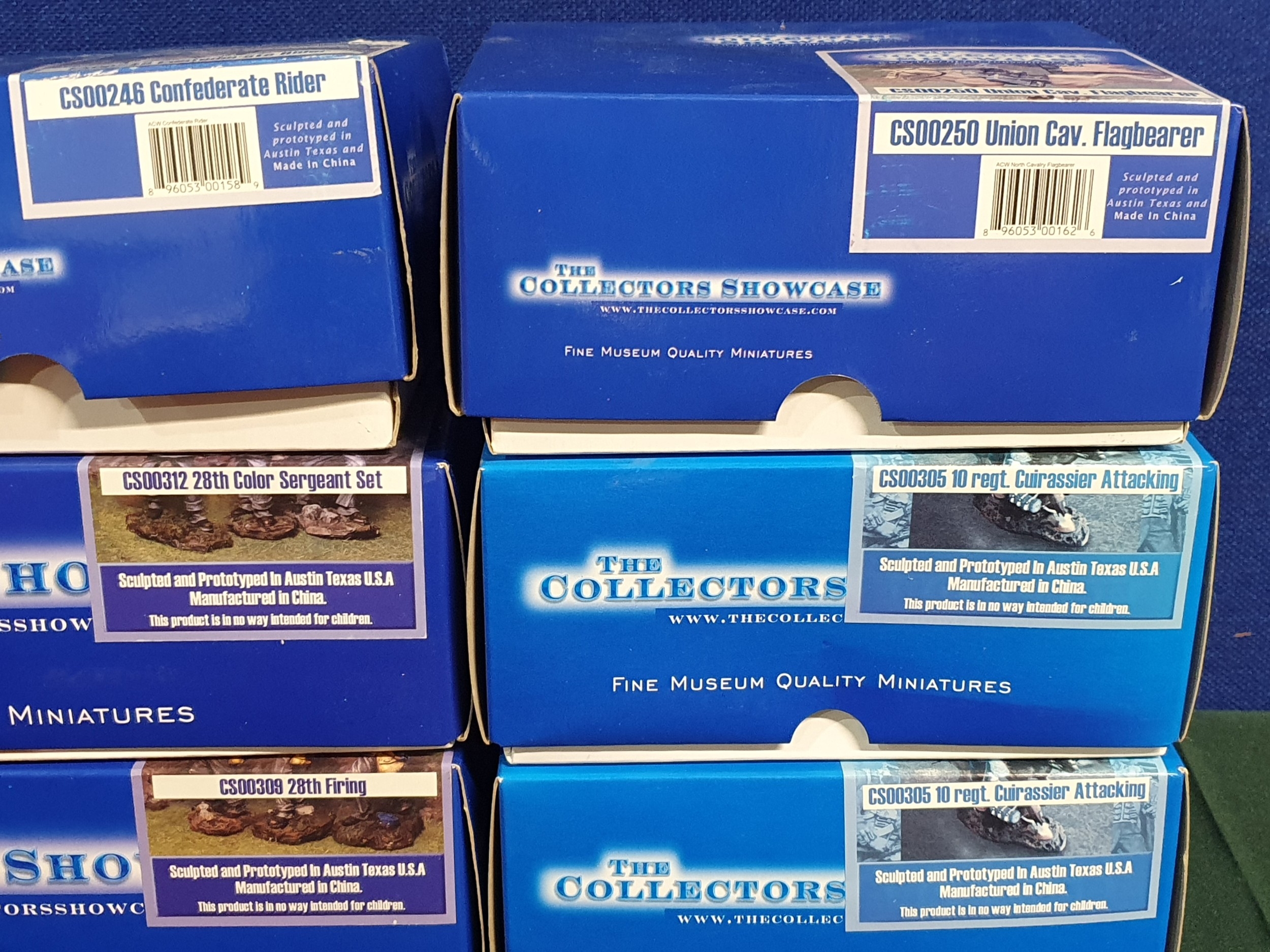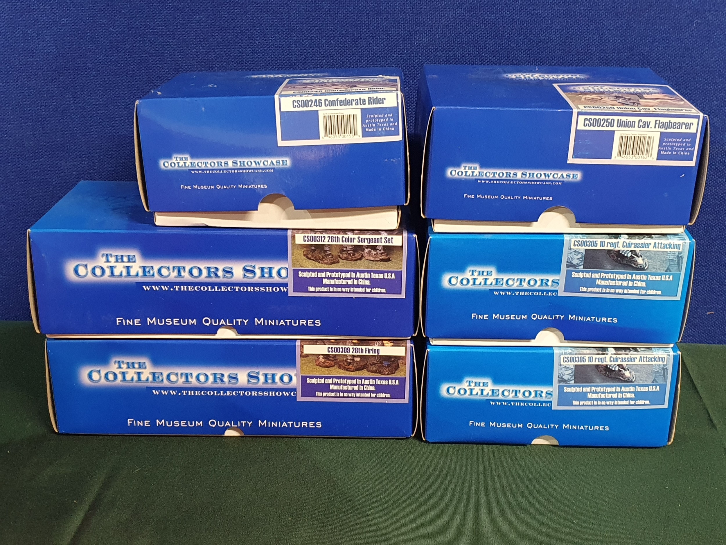 Six boxed Collector's Showcase Waterloo Series and American Civil War Sets of Figures comprising CS00250 Union Cavalry Flagbearer, 2x CS00305 10th Regiment Cuirassier Attacking, CS00246 Confederate Rider, CS00312 Colour Sergeant Set and CS00309 28th Firing, Ex condition, generally as new