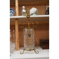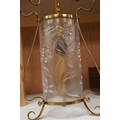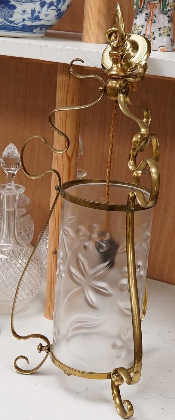 An Art Nouveau frosted glass and a brass hanging lamp, 54cm