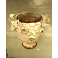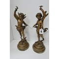 A pair of gilt metal figures of sea putti, each standing on a starfish, one holding a branch of coral, the other a starfish aloft, and dragonfly wings, on socle pedestal bases, each 39cm high.