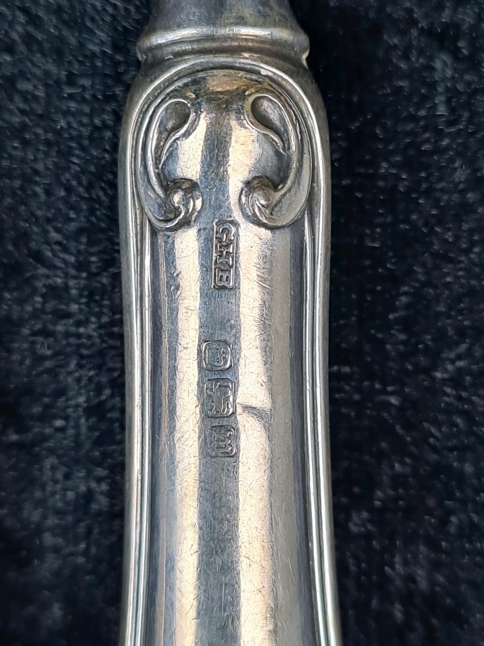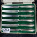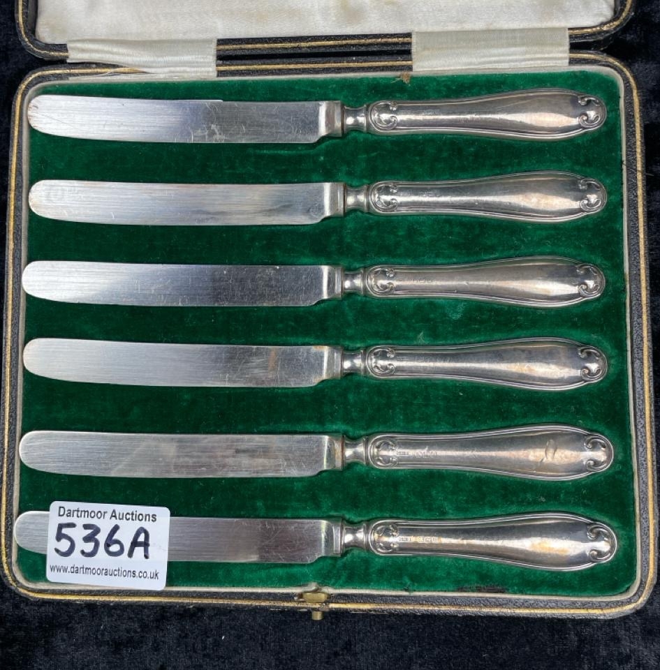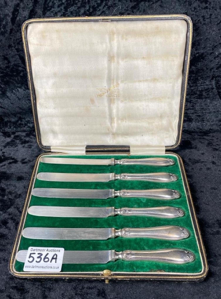 Boxed set of silver hallmarked butter knives by Mappin & Webb in a fitted case with the maker’s mark.