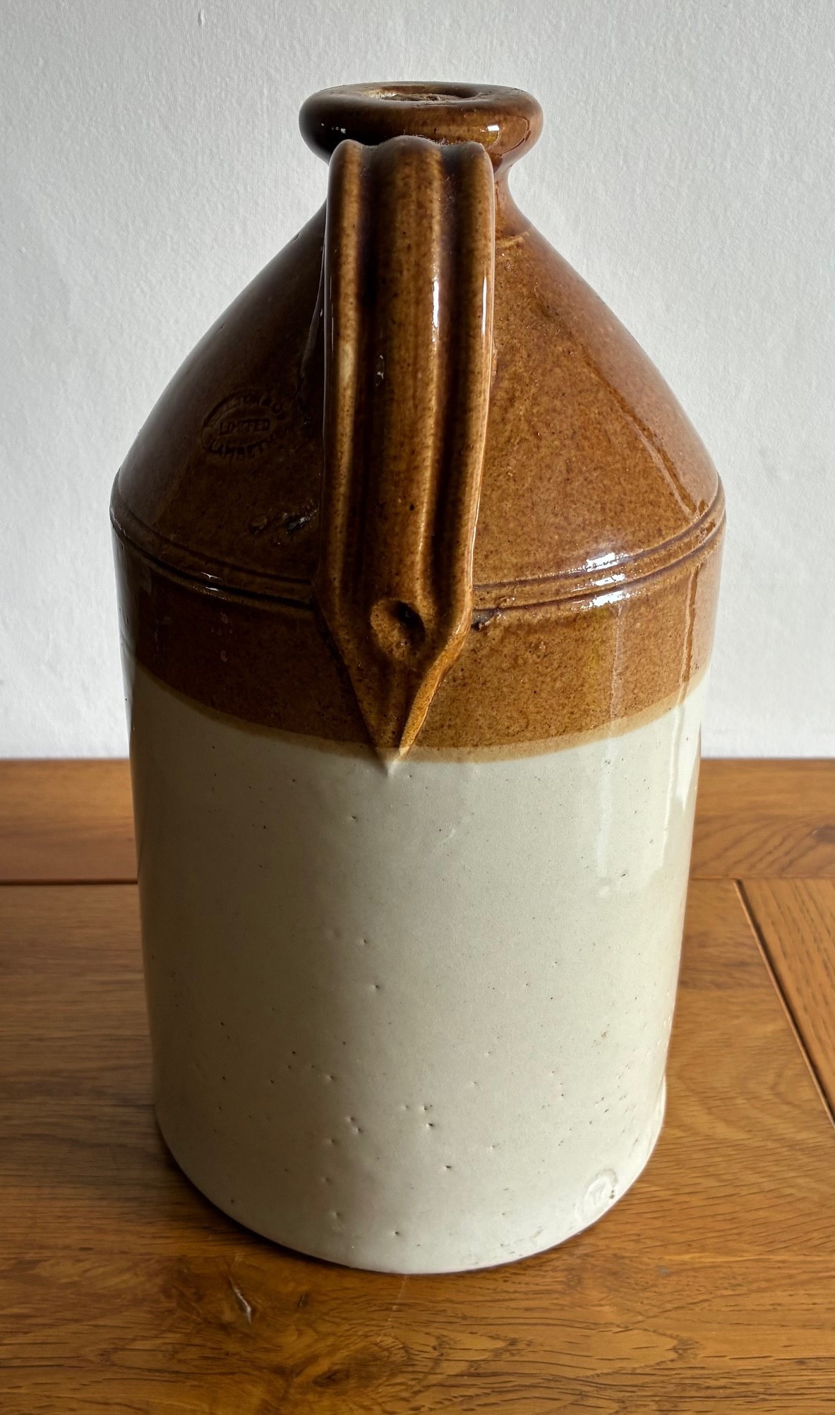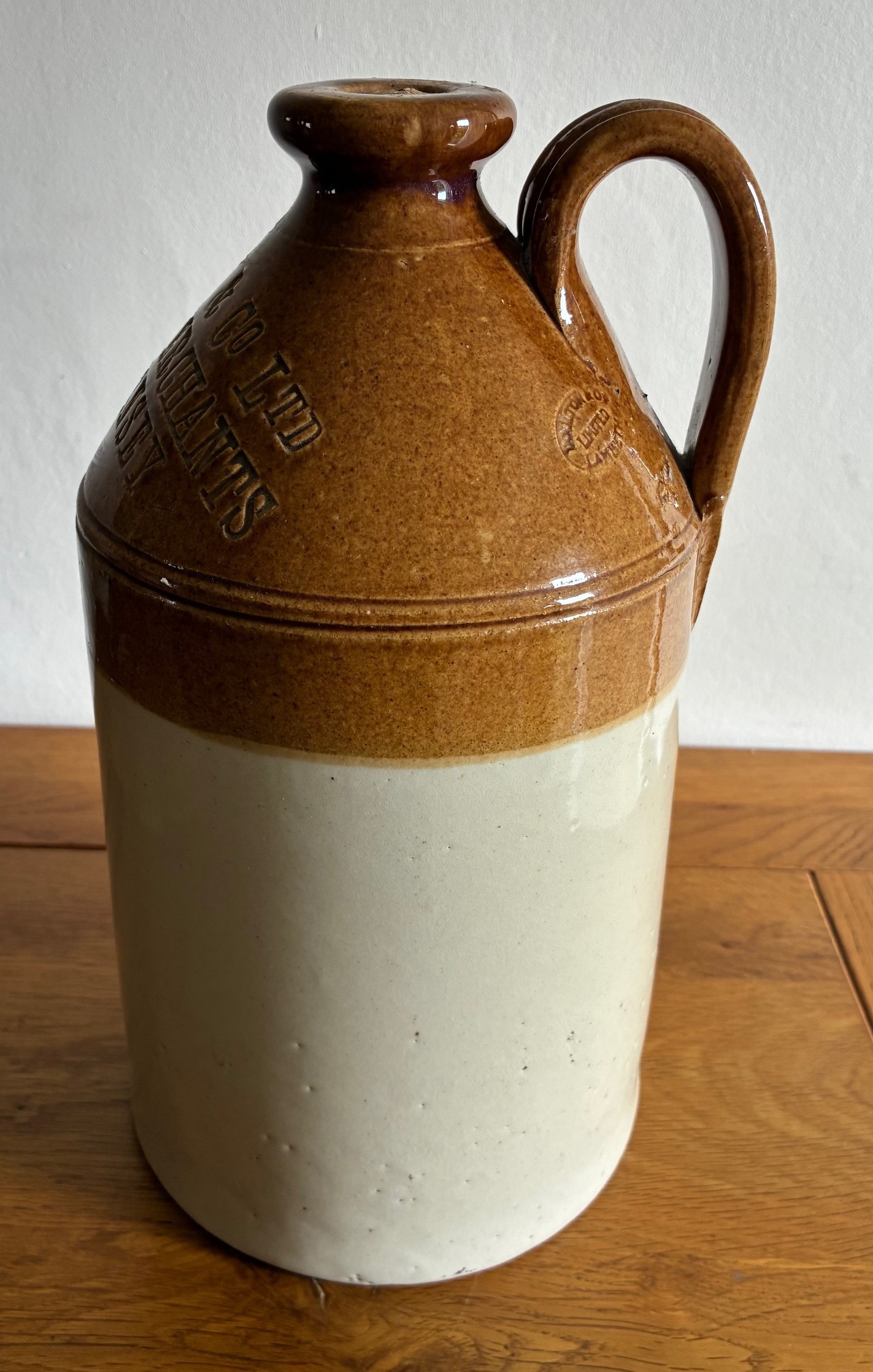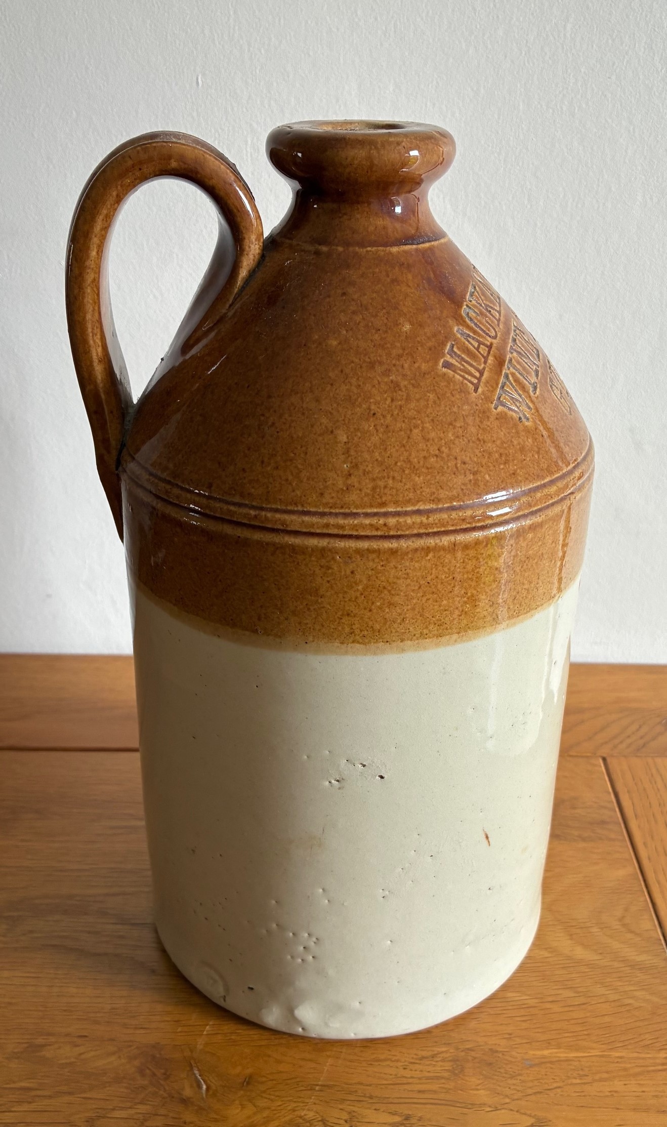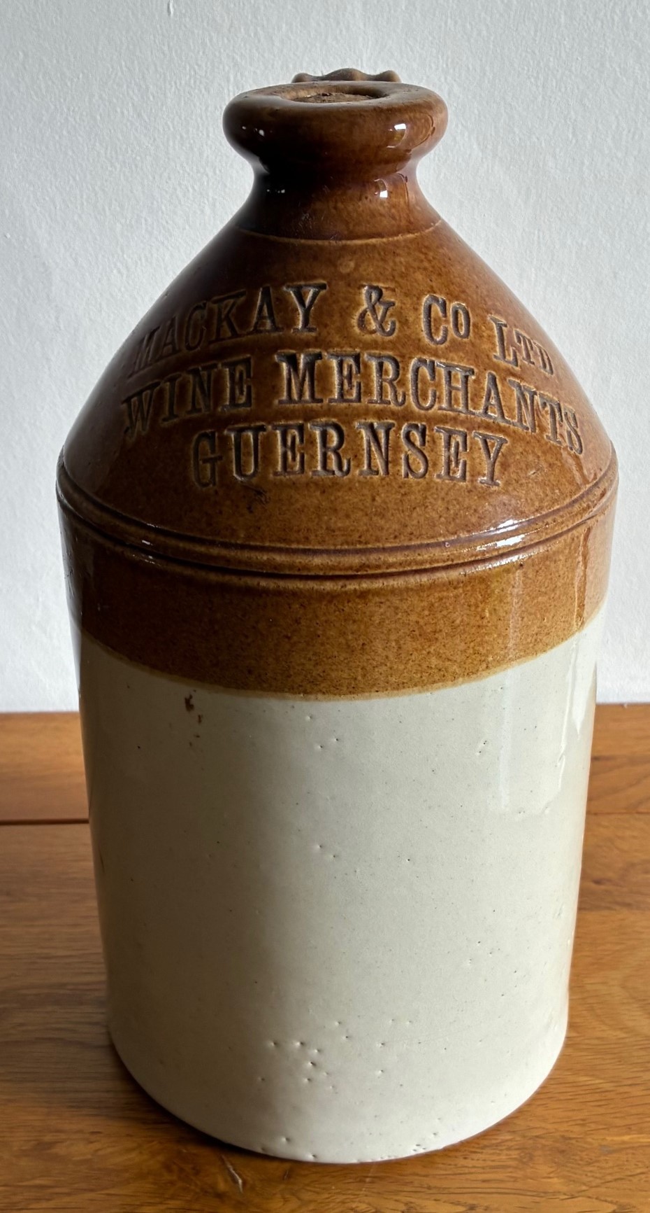 Guernsey two tone stoneware half gallon size flagon, impressed Mackay & Co. Ltd. Wine Merchants, Guernsey, 27cm high.