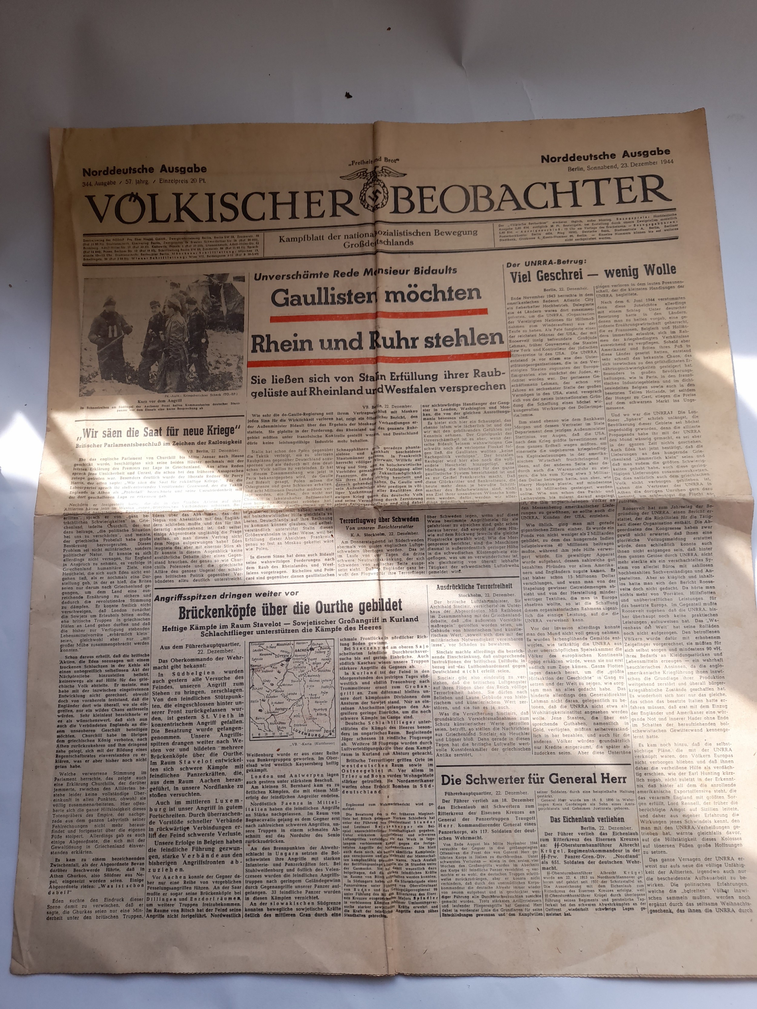 Collectable German Newspaper relating to WW2 Dated 23 DEZEMBER 1944