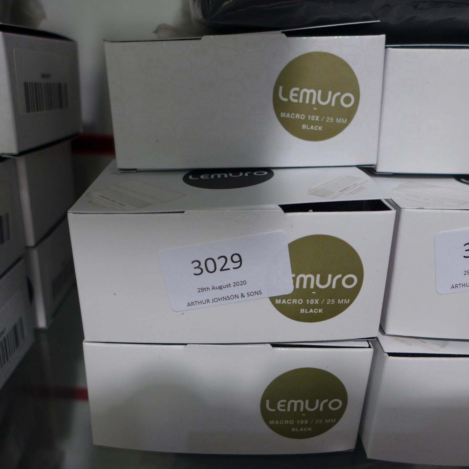 Five Lemuro Macro 10x/25mm black lenses with lens carry case