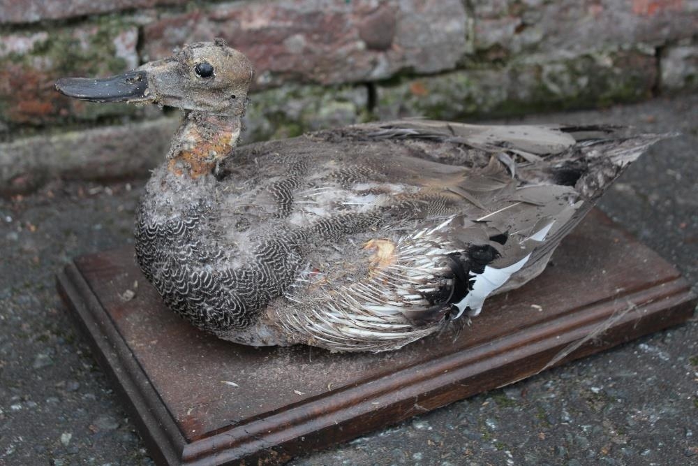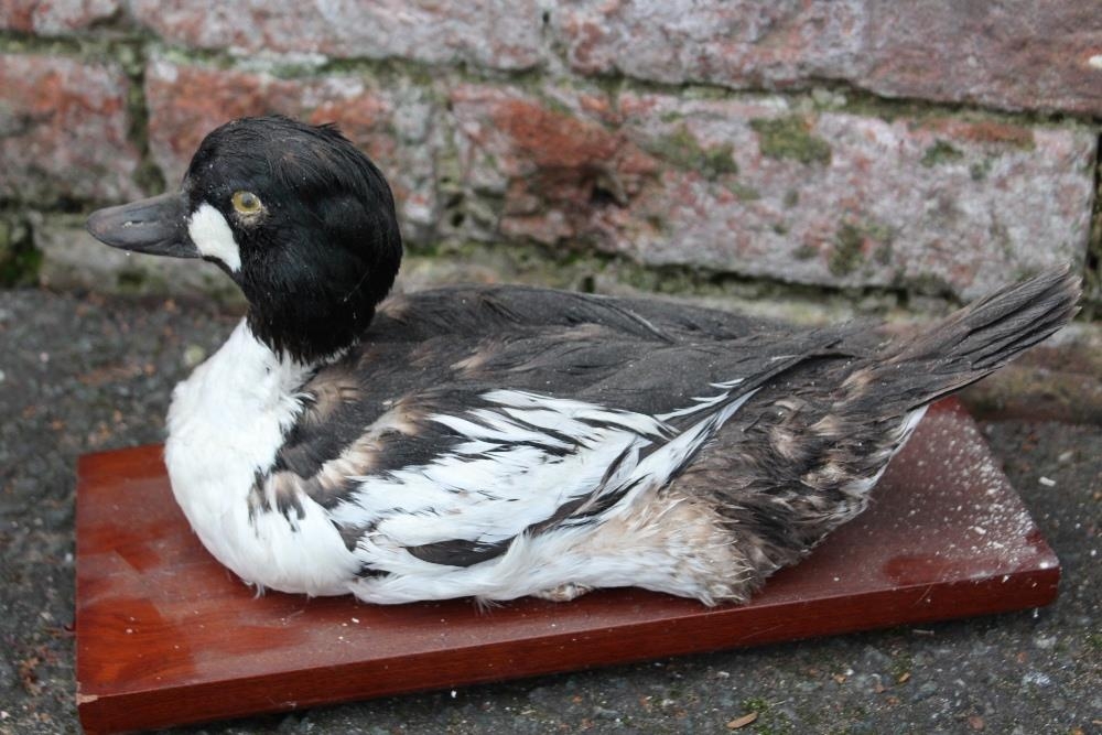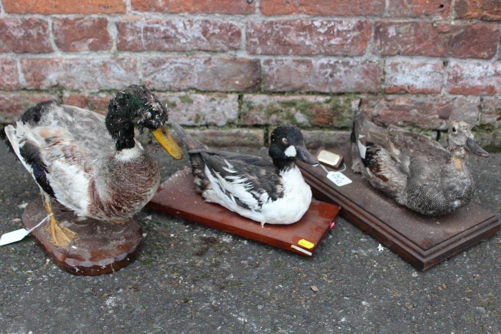 TAXIDERMY - THREE LATE 19TH / EARLY 20TH CENTURY STUDIES OF DUCKS, comprising Golden Eye Duck , 31 cm, a Mallard H 30 cm, L 39 cm, and a Gadwall H 21 cm, L 36 cm, all three raised on wooden plinths