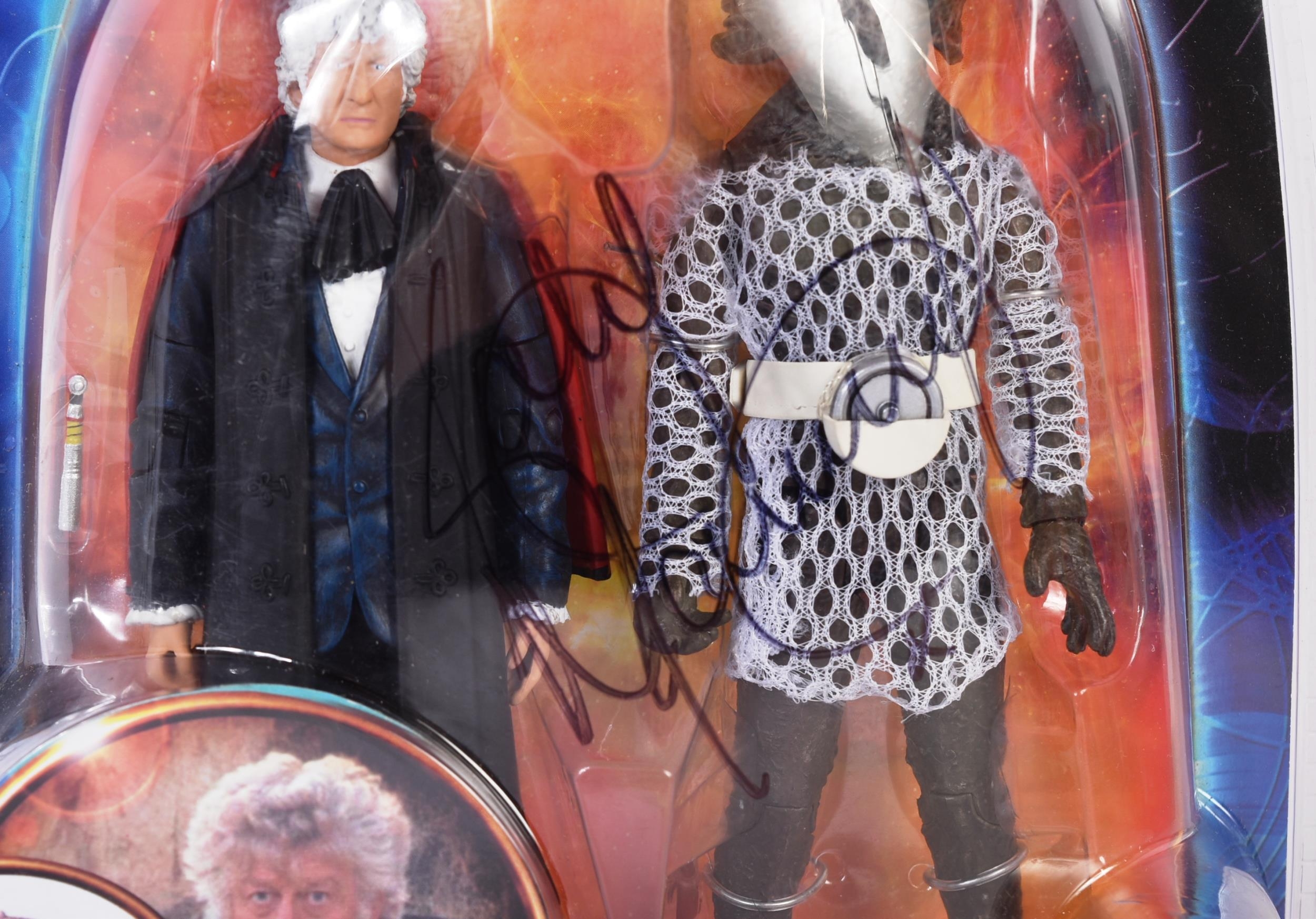 Doctor Who - Character Options - Katy Manning (Jo Grant) - a 3rd Doctor themed action figure set ' Sea Devil from The Sea Devils '. Signed to the front by actress Katy Manning in black ink. Highly detailed Dr Who figures. Factory sealed, contents mint and unused. Autograph obtained personally by the vendor.