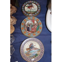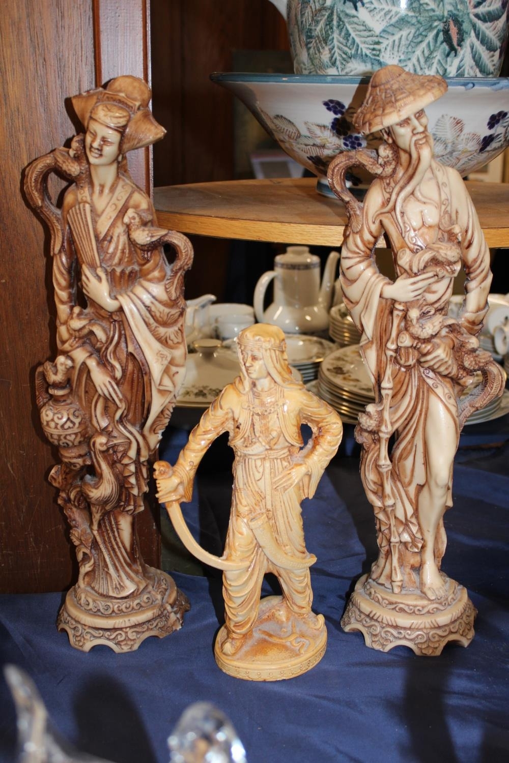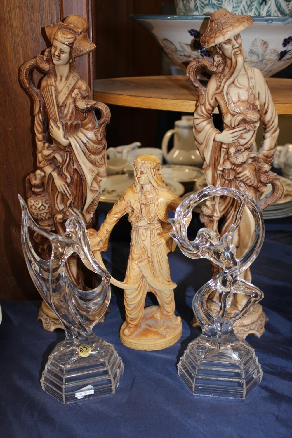 Two Royal Crystal Rock figures and three resin figures.
