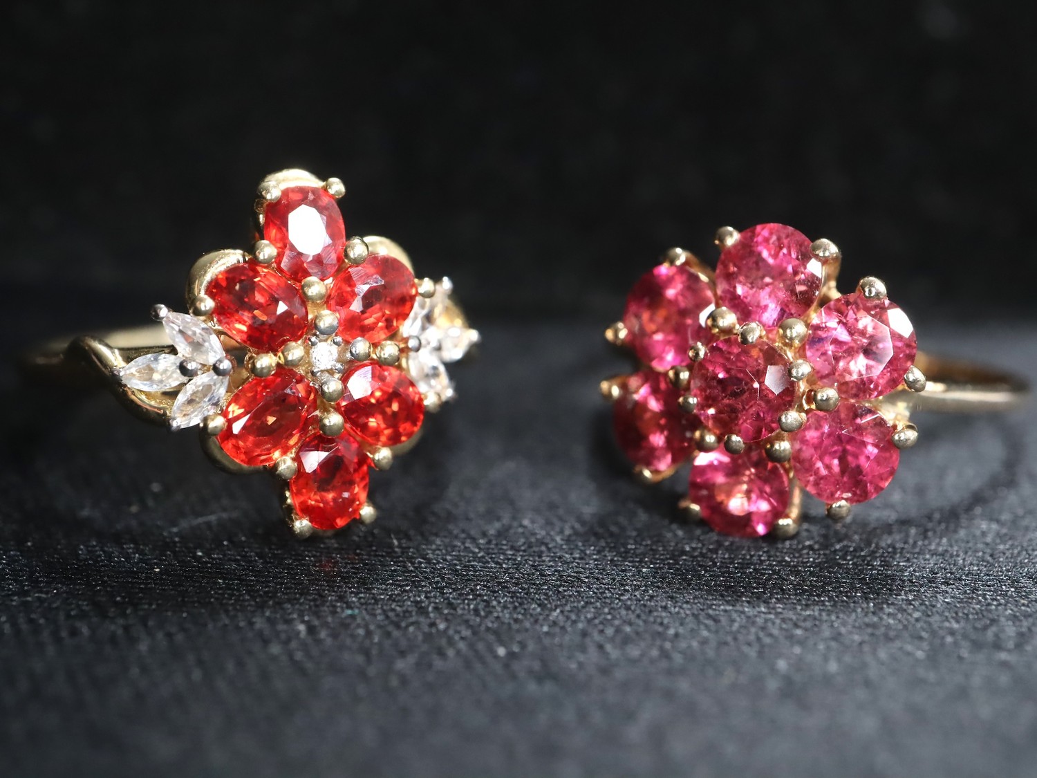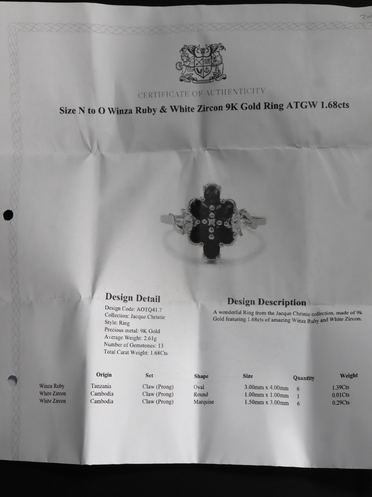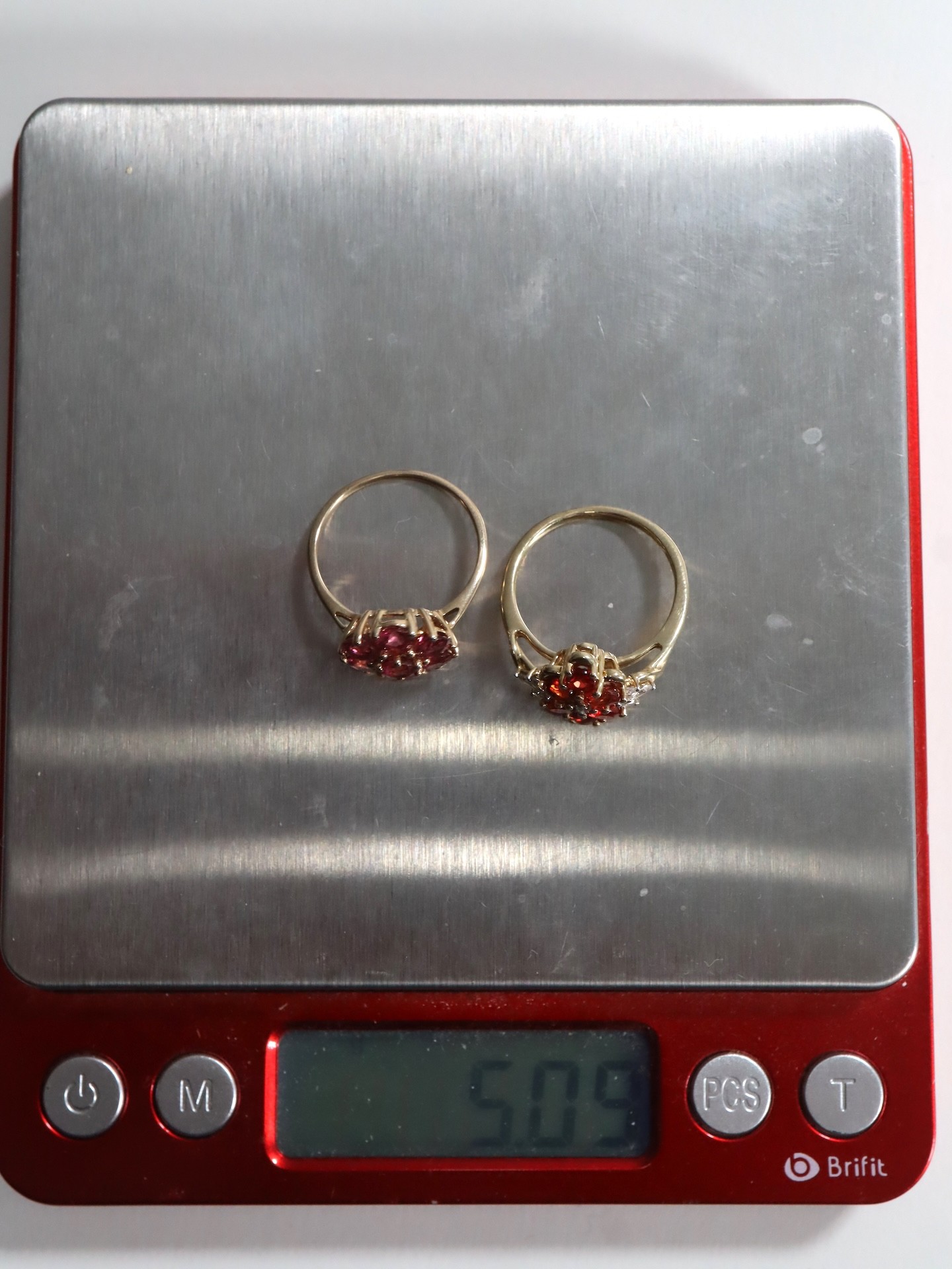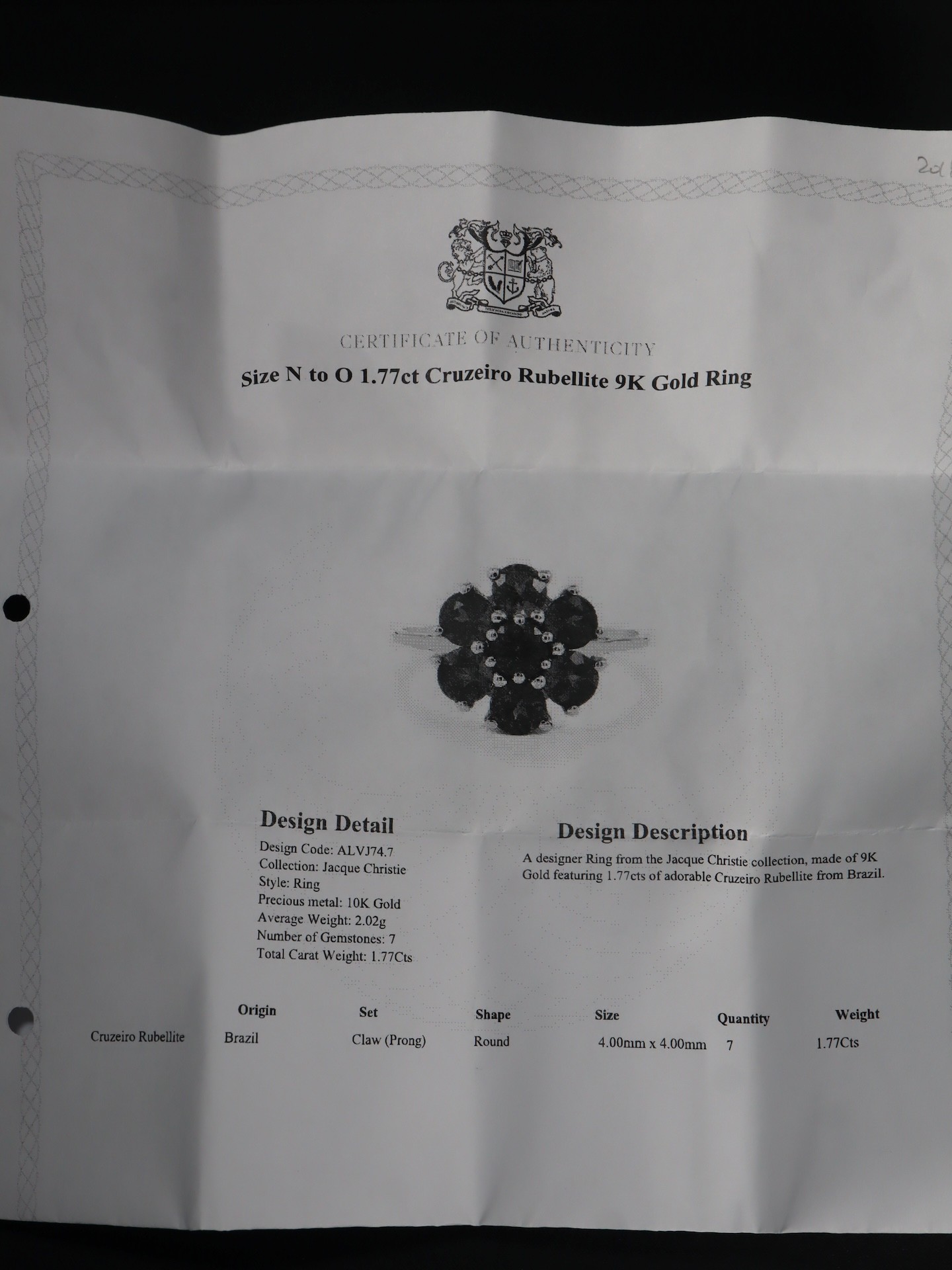 Winza Ruby & White Zircon 9K Gold Ring 1.68ct Size N-O & 1.77ct Cruzeiro Rubellite 9K Gold Ring Size N-O-5g