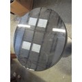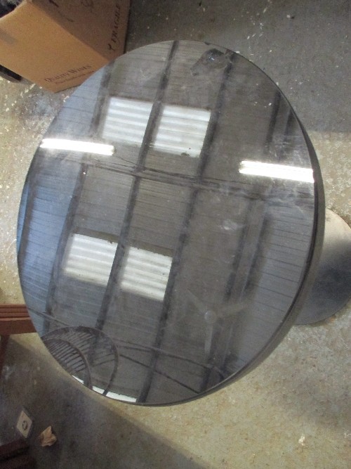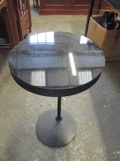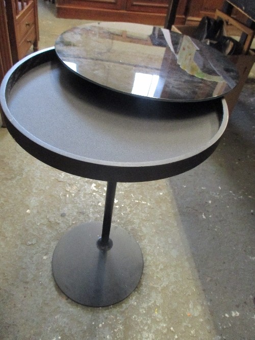 CONTEMPORARY STYLE CIRCULAR SIDE TABLE WITH GLASS TOP WHICH SLIDES FOR STORAGE OF SMALL ITEMS - DIA 36CM