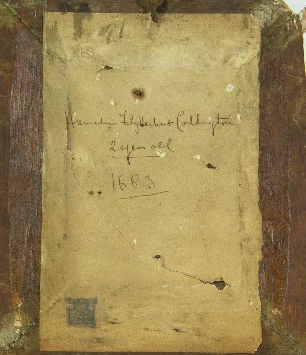 A Victorian painted miniature portrait of Hamelin Fitzherbert Coddington. Inscribed on the reverse, aged 2 years, and dated 1883, in an ornate gilt gesso frame.