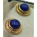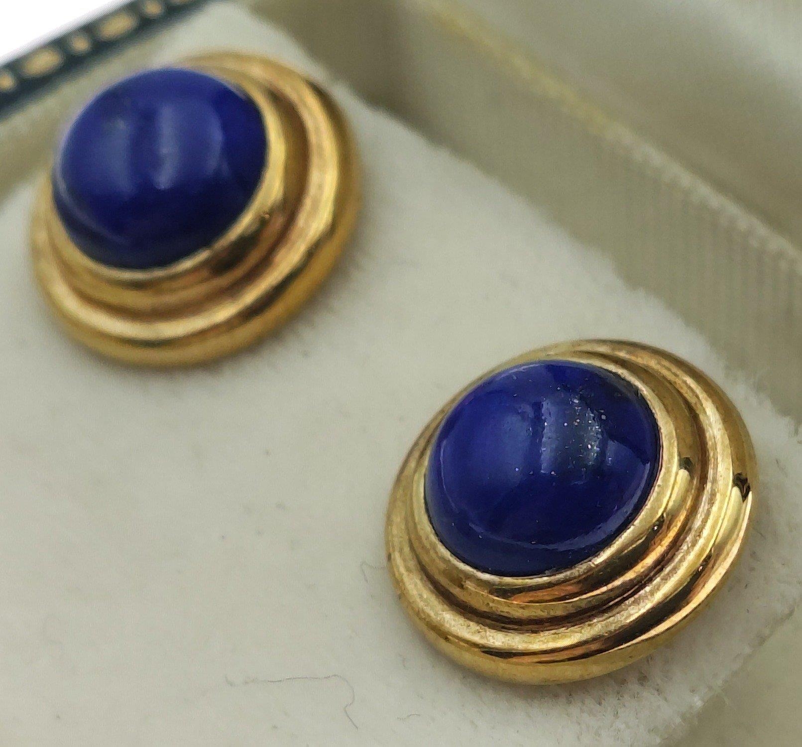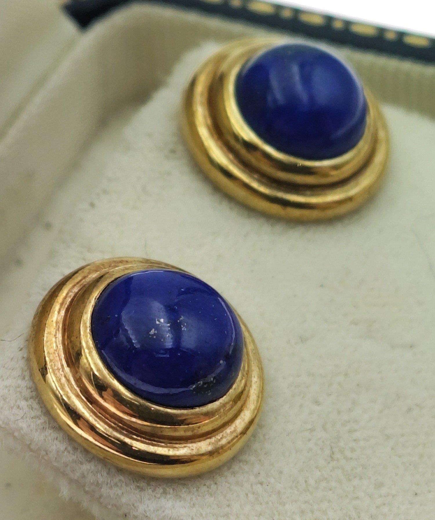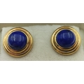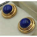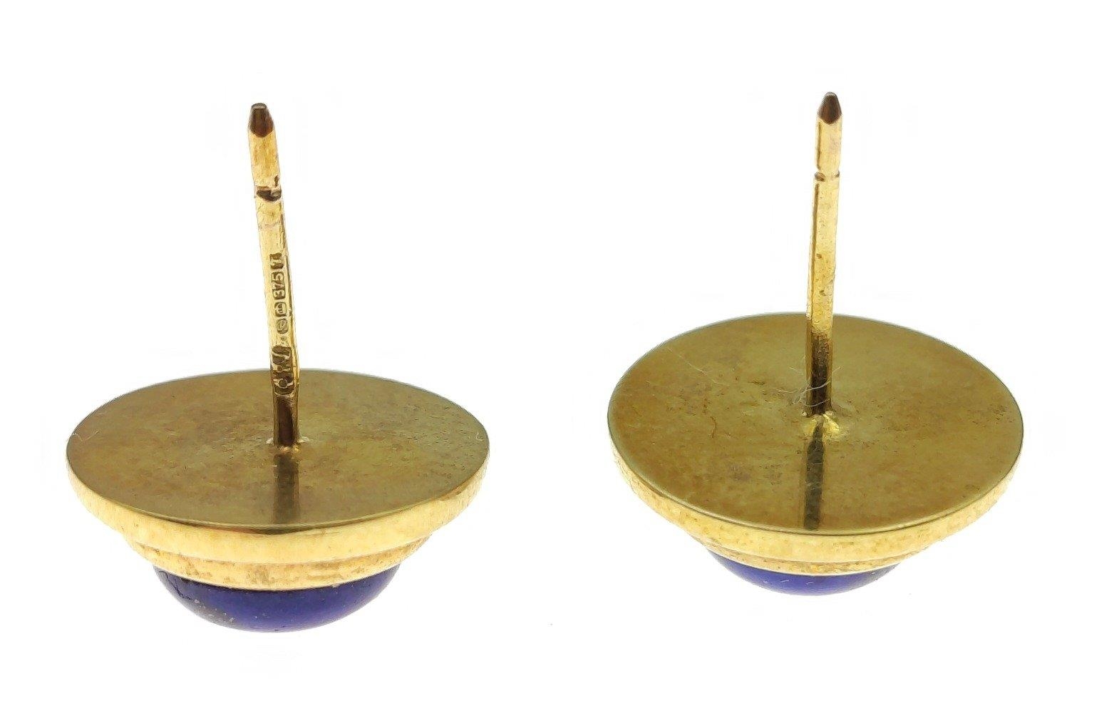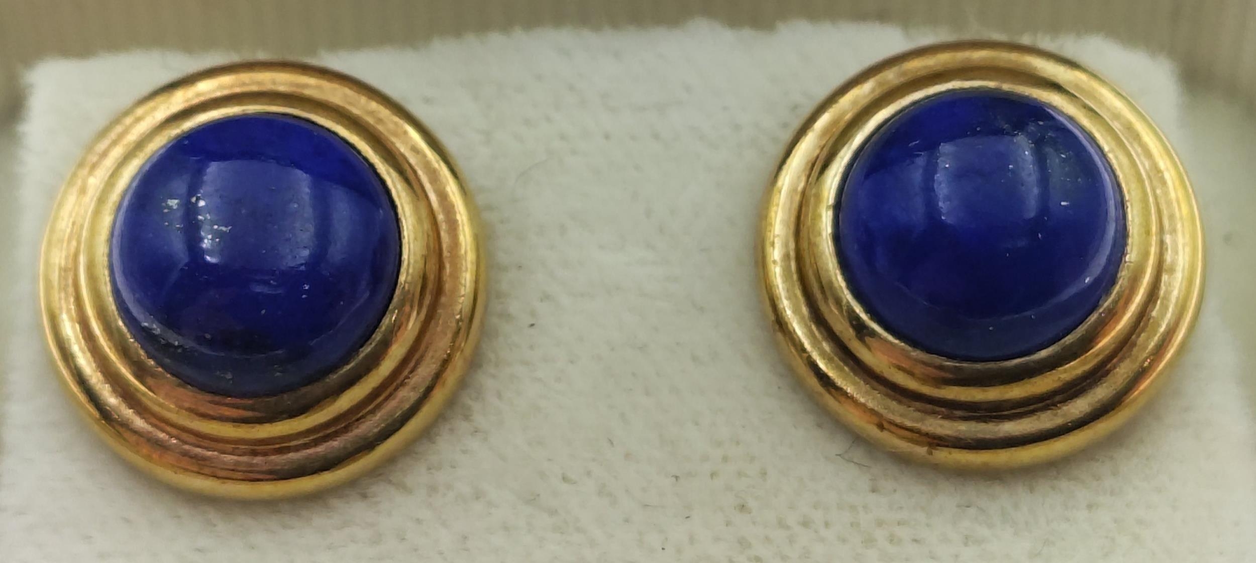 A pair of 375 stamped round blue lapis lazuli set stone earrings - gross weight 1.87g approx