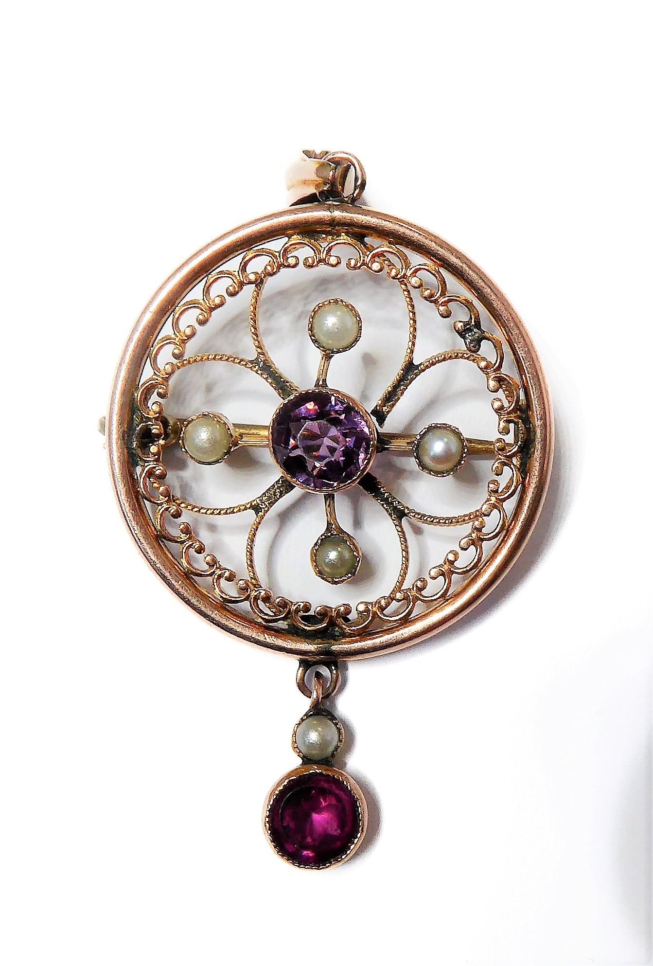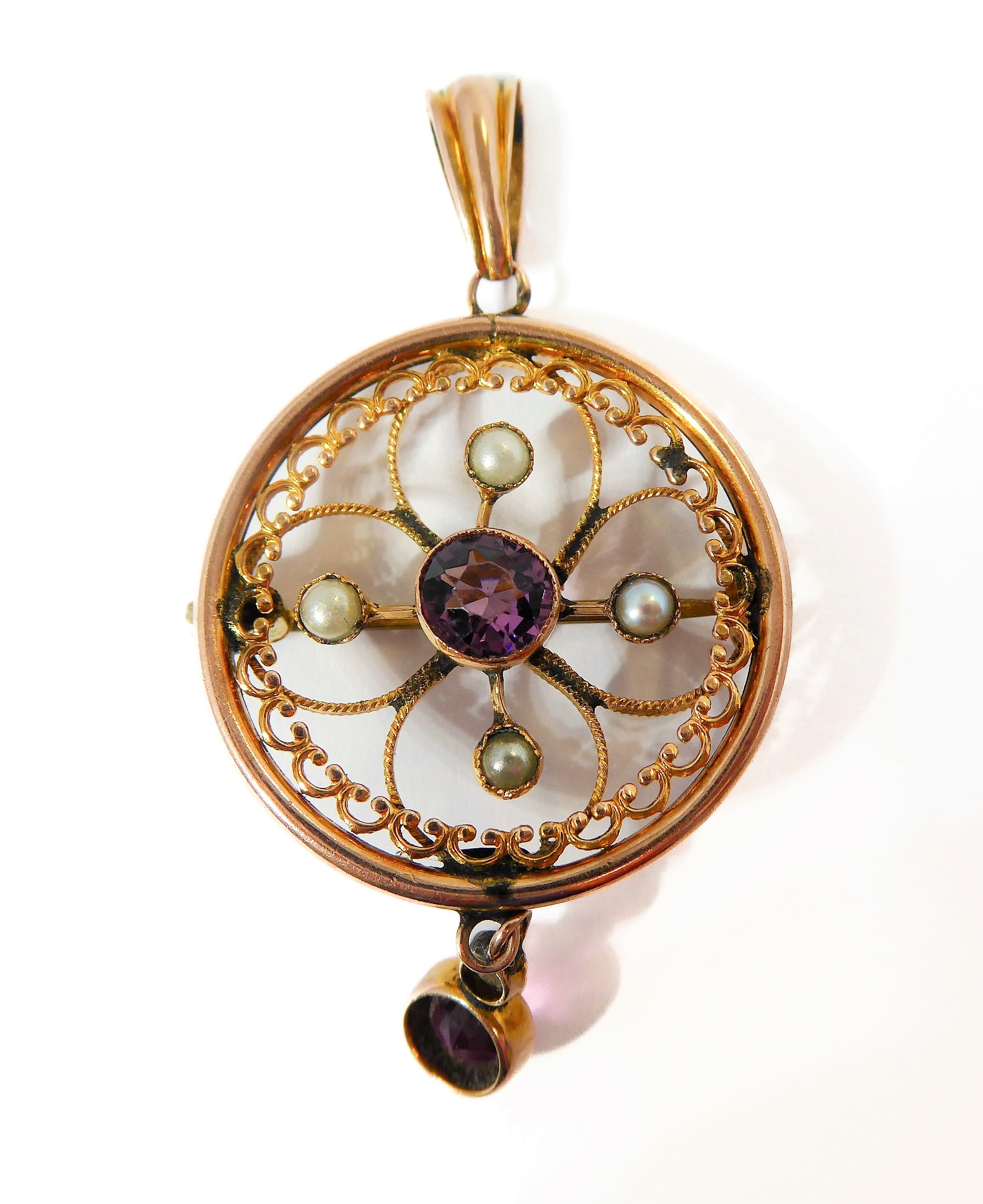 A Victorian 9-carat gold, amethyst and pearl pendant