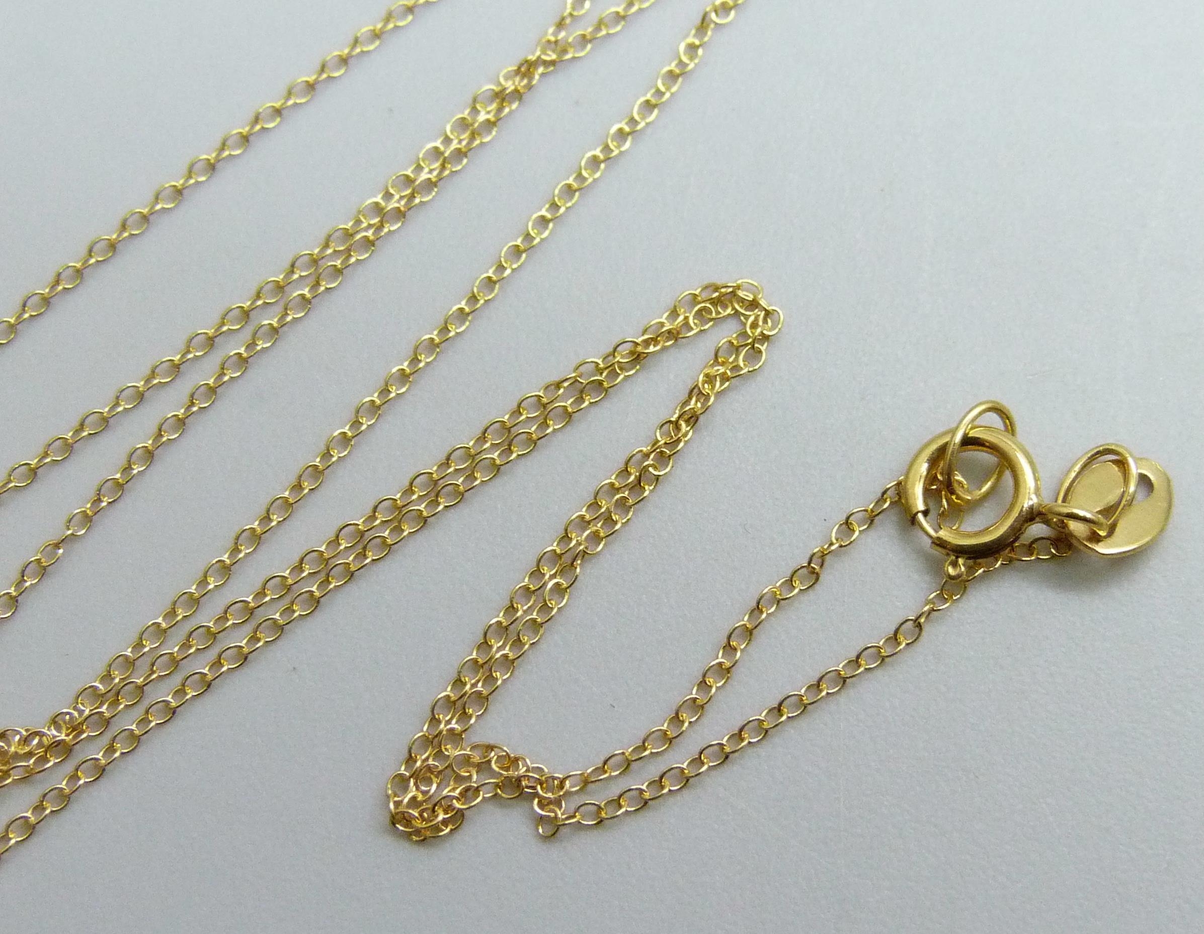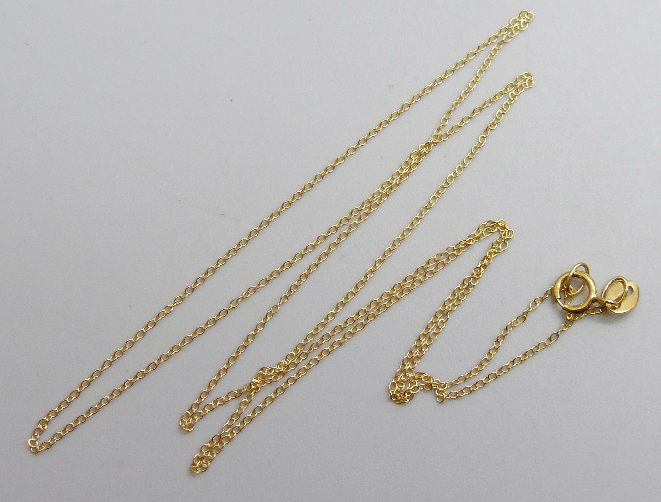 A 9ct gold fine cable chain necklace, 20 inch, 0.5g