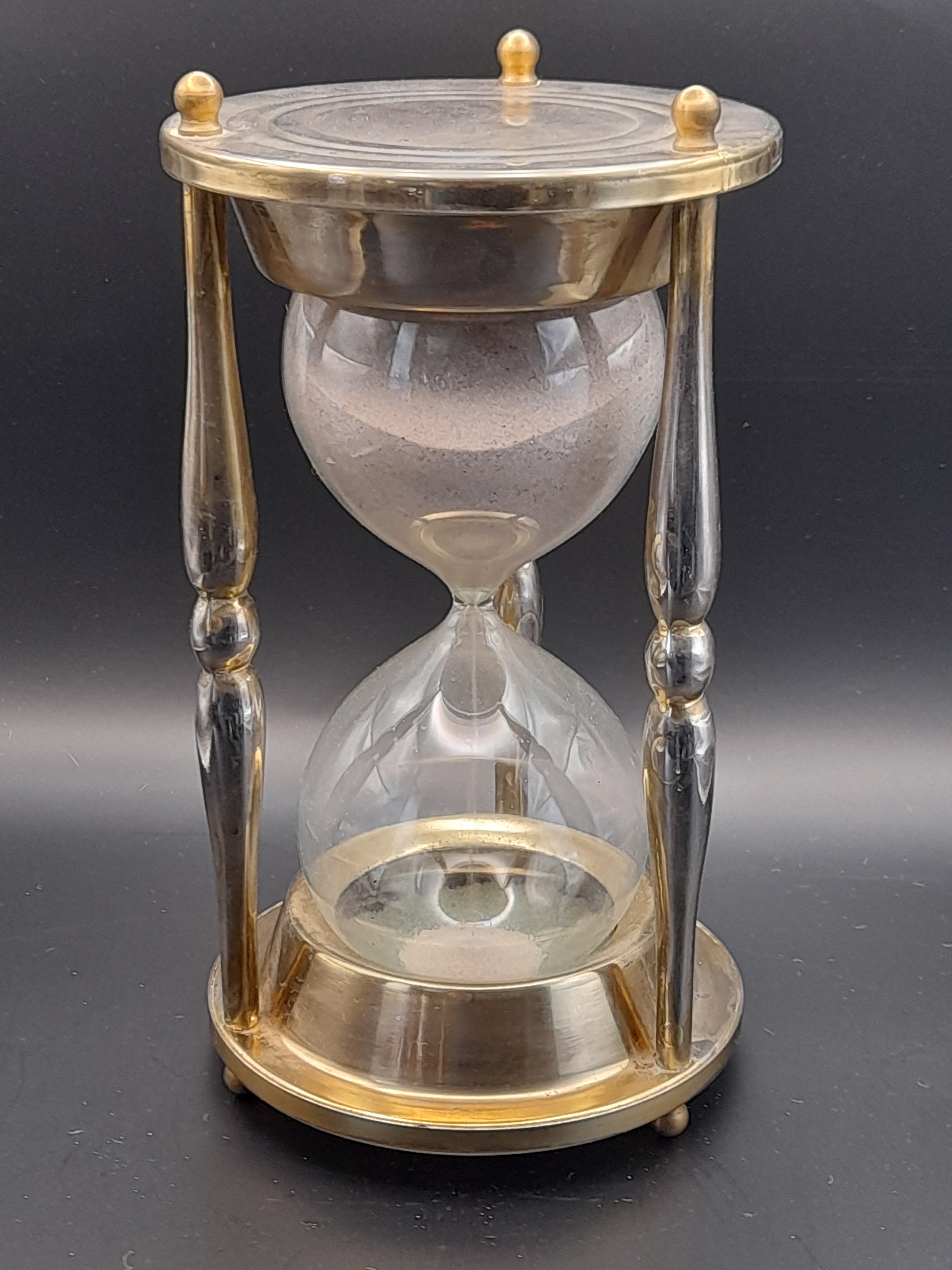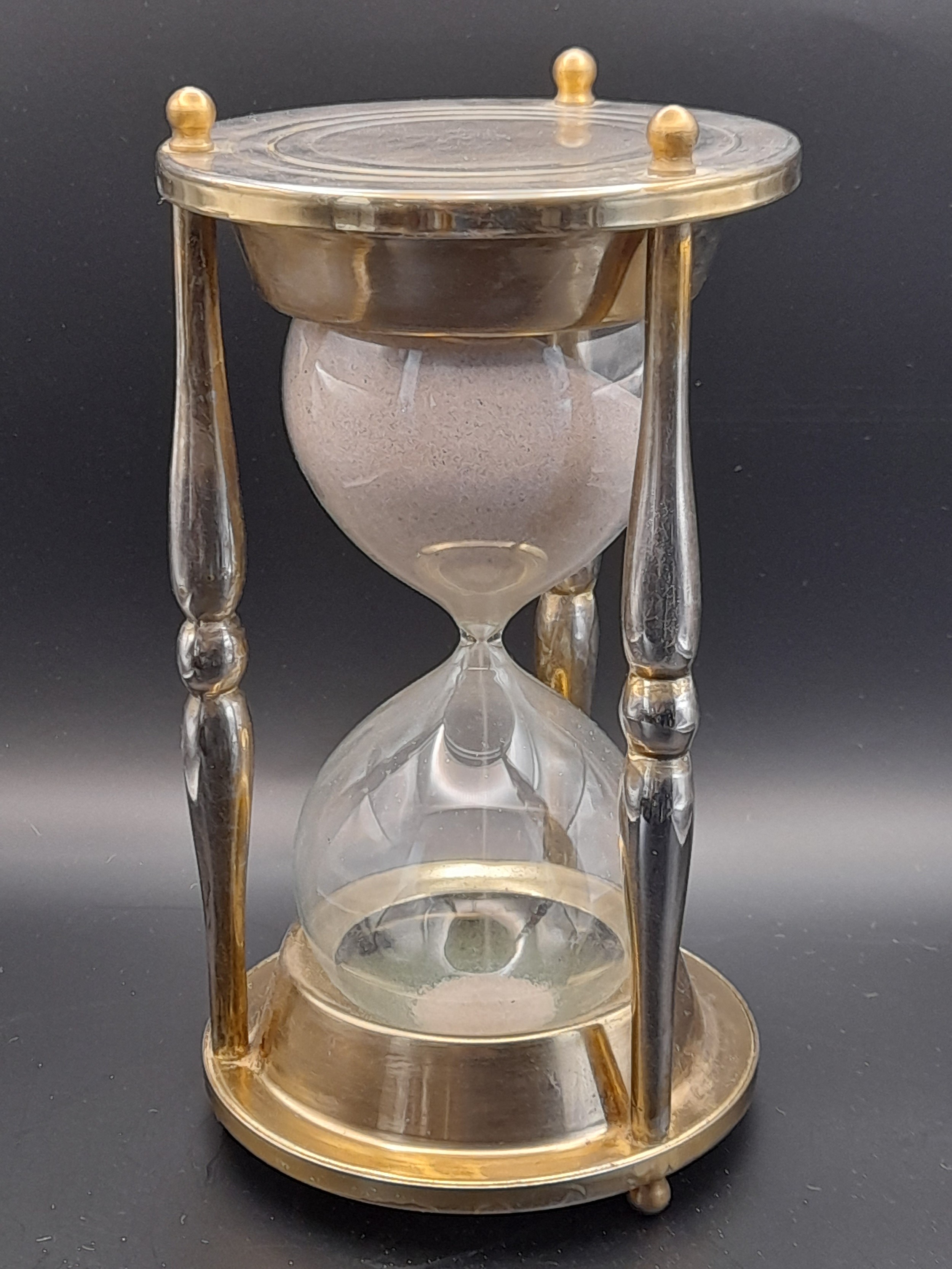 Large metal and glass egg timer standing 22cm high