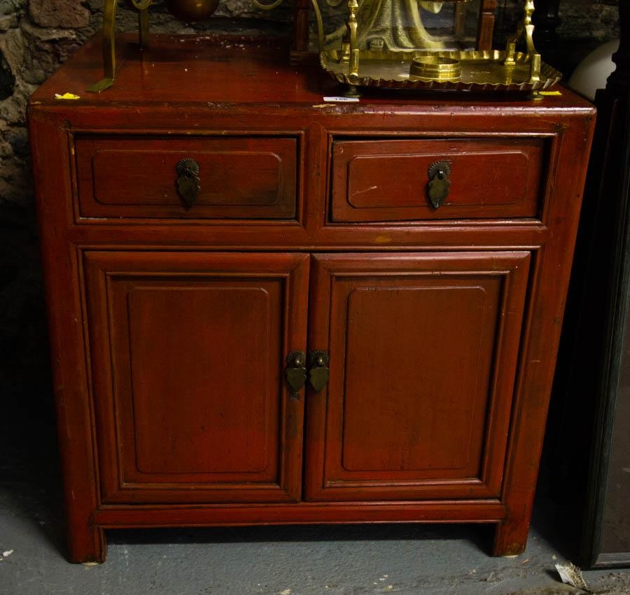 RED LACQUER CHINESE STYLE CABINET 62 X 50 X 60 CM