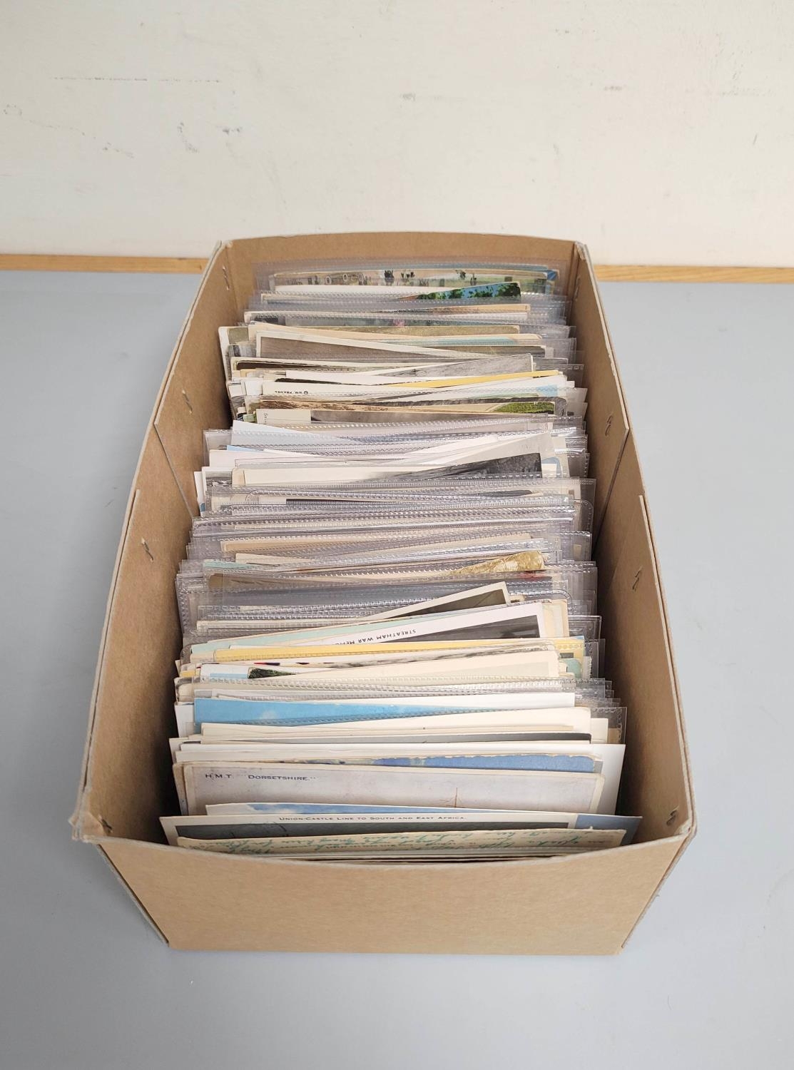 Carton containing approximately 500 early 20th century postcards mostly of British & world topographical views. To include portraits, nautical scenes etc.