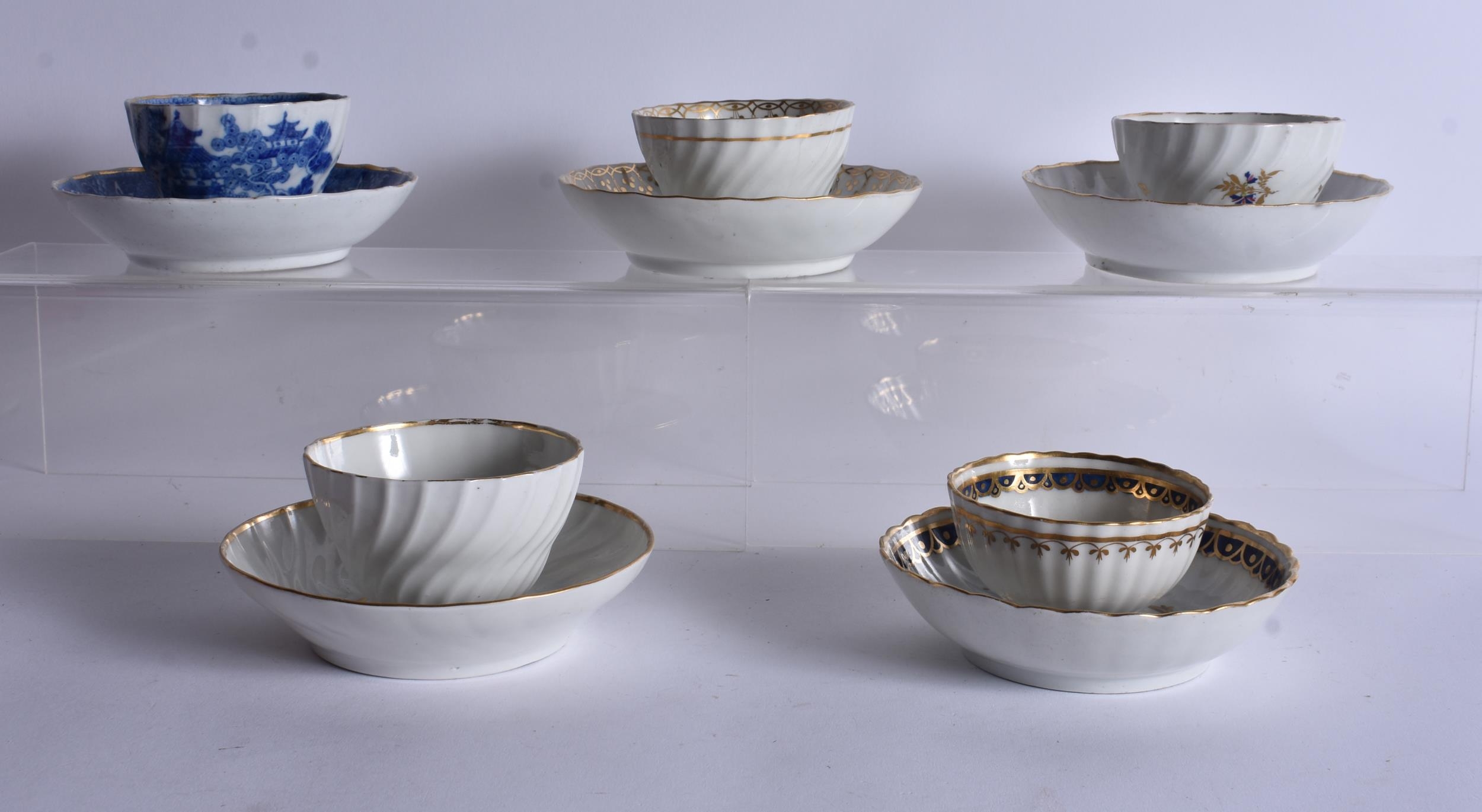 FIVE EARLY 19TH CENTURY CHAMBERLAINS WORCESTER TEABOWLS AND SAUCERS. (10)