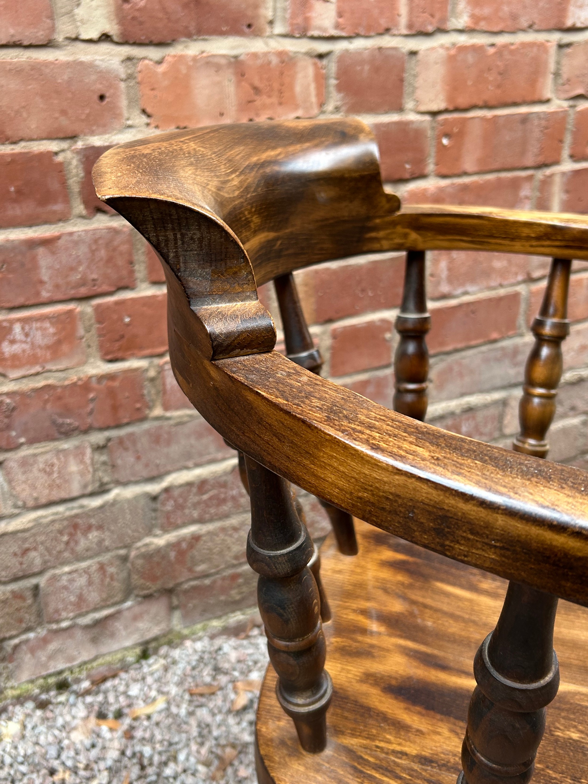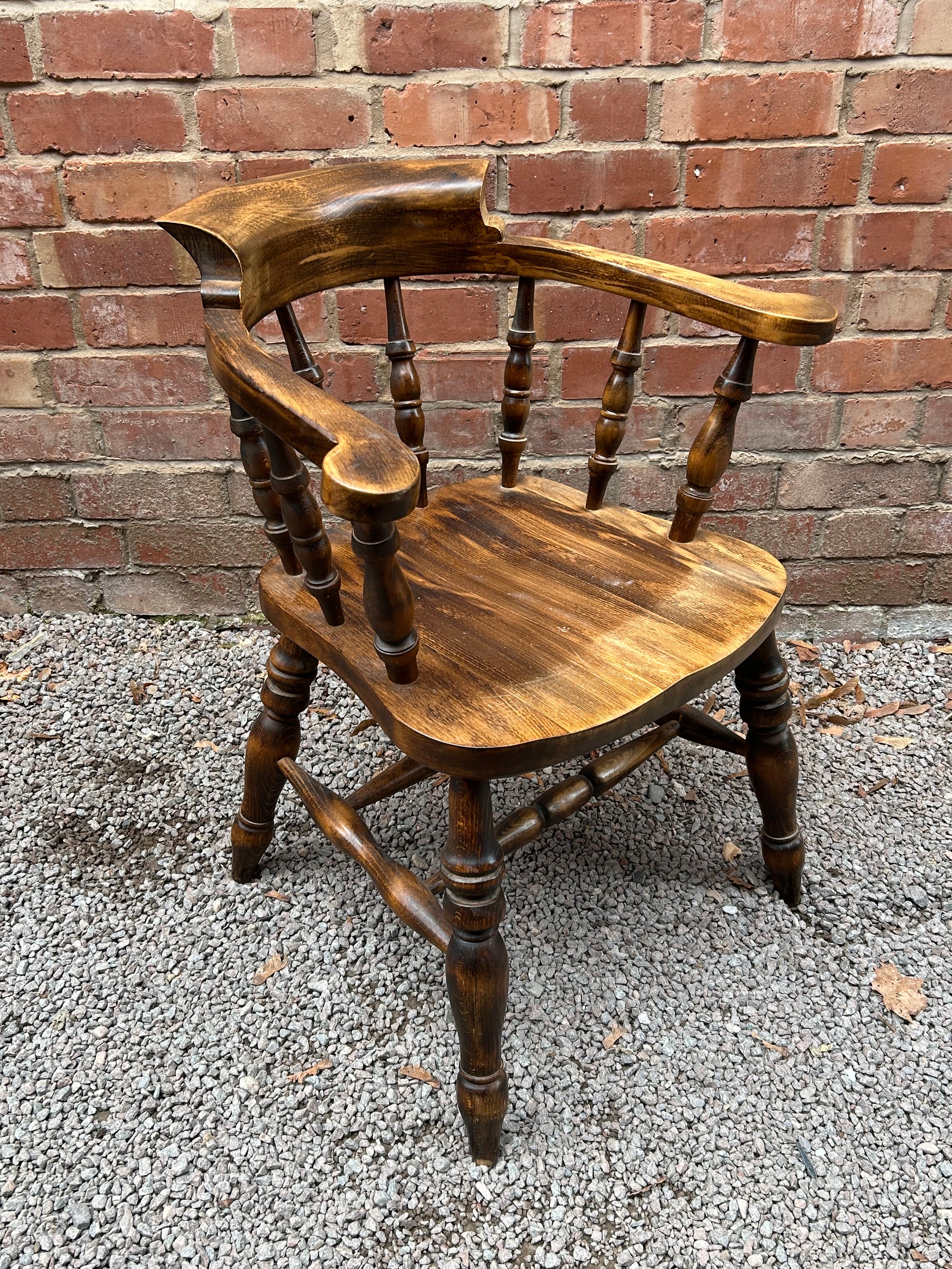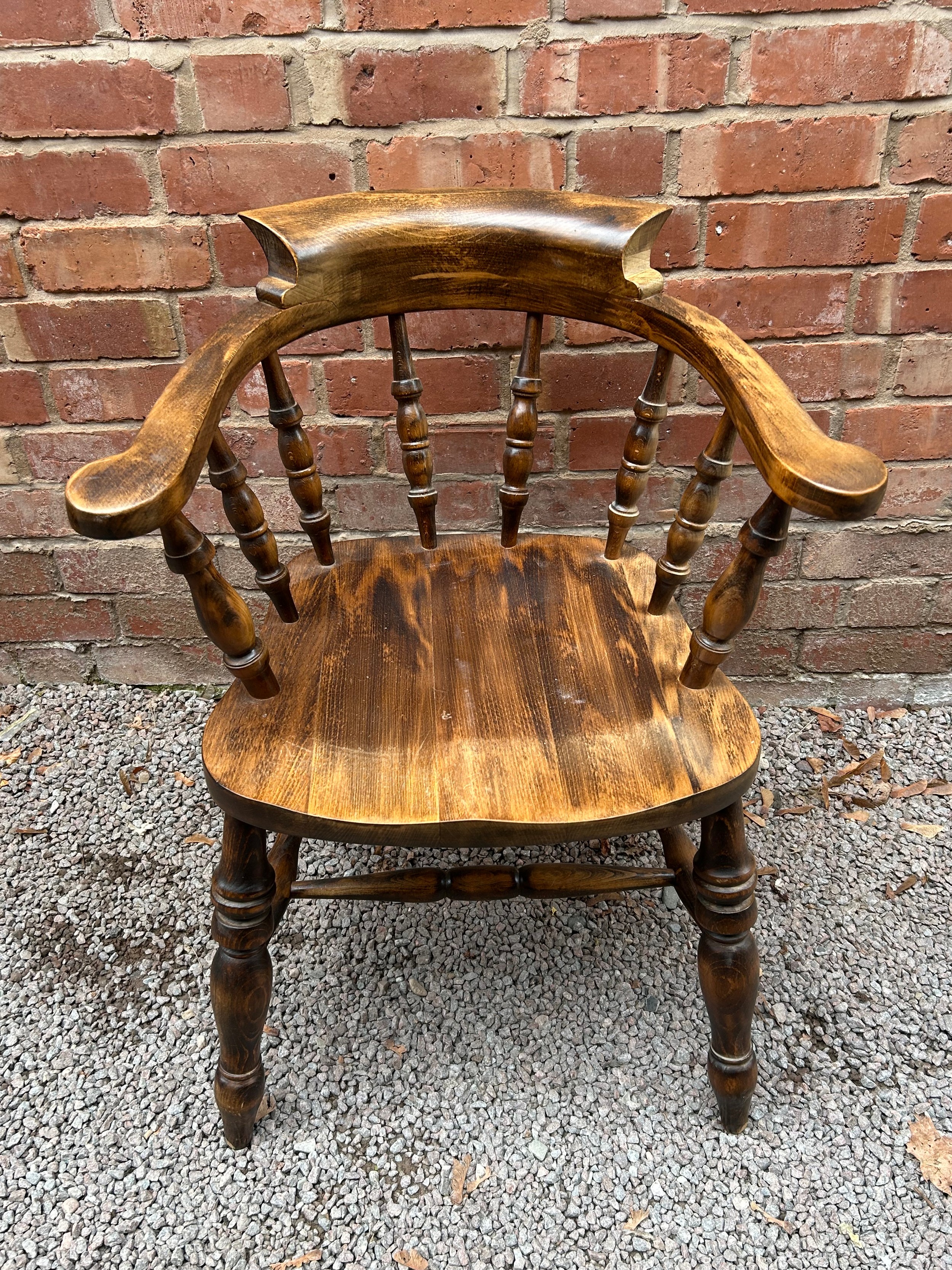 BEECH TURNED SPINDLE SMOKERS BOW ARM CHAIR