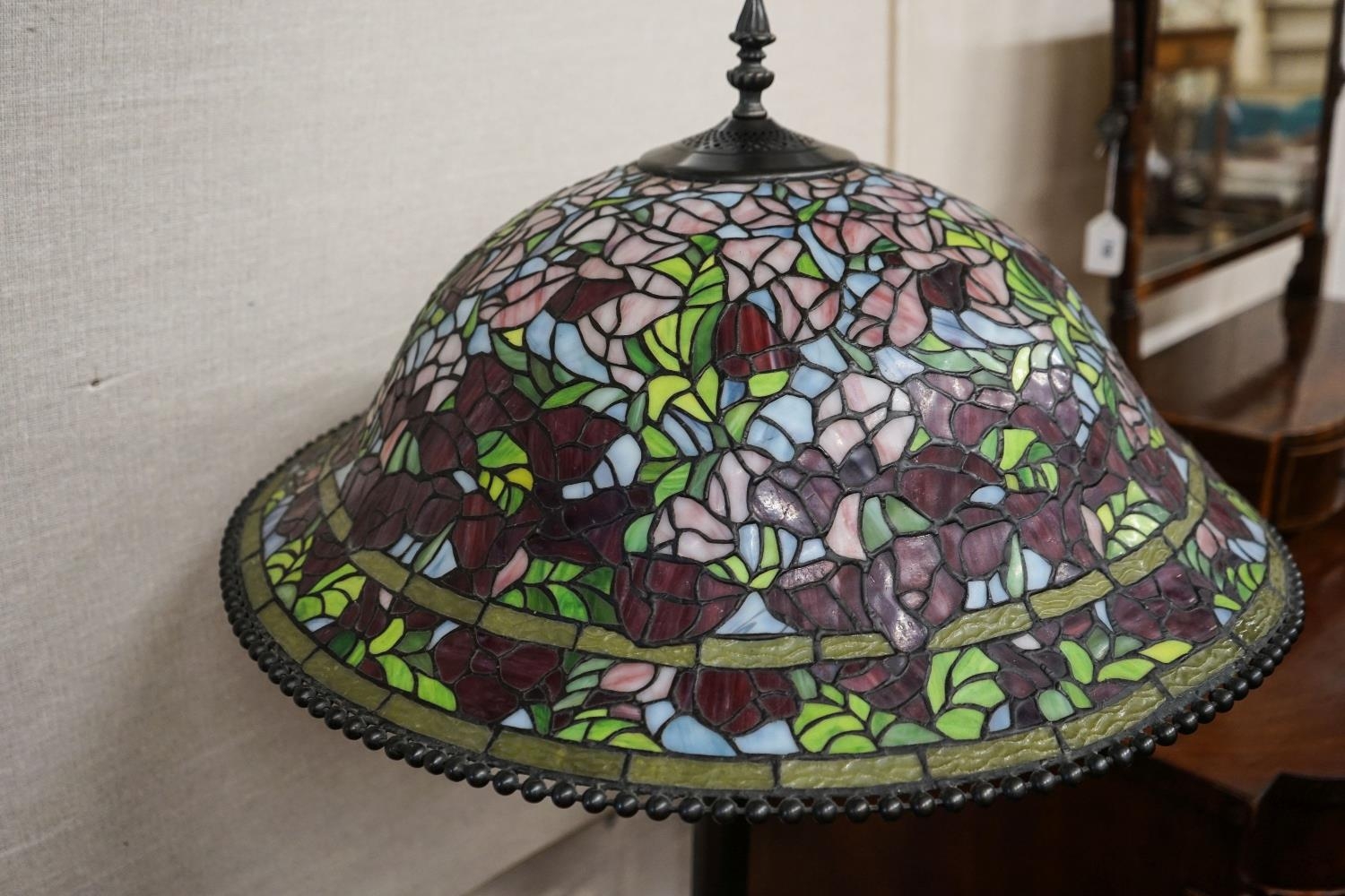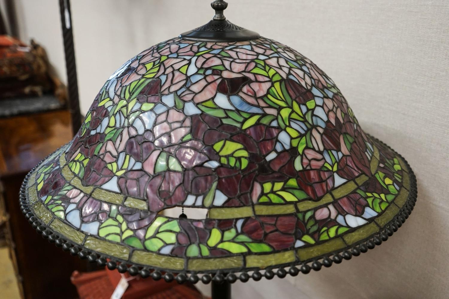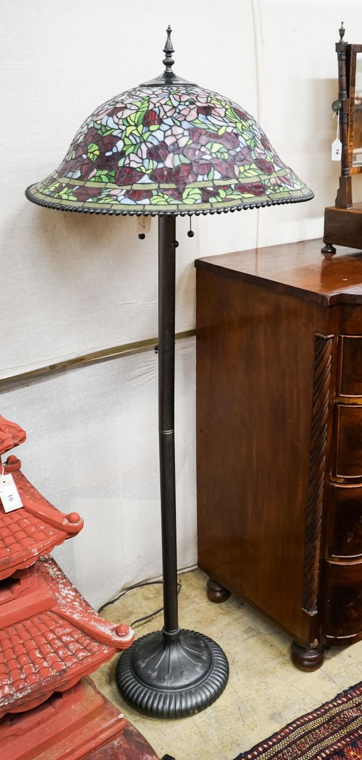 A bronzed finish Tiffany style standard lamp with shade, 160cm high, 59cm diameter