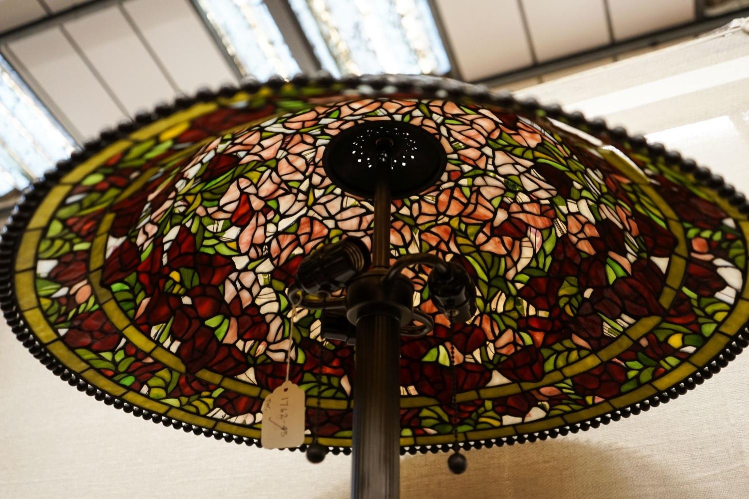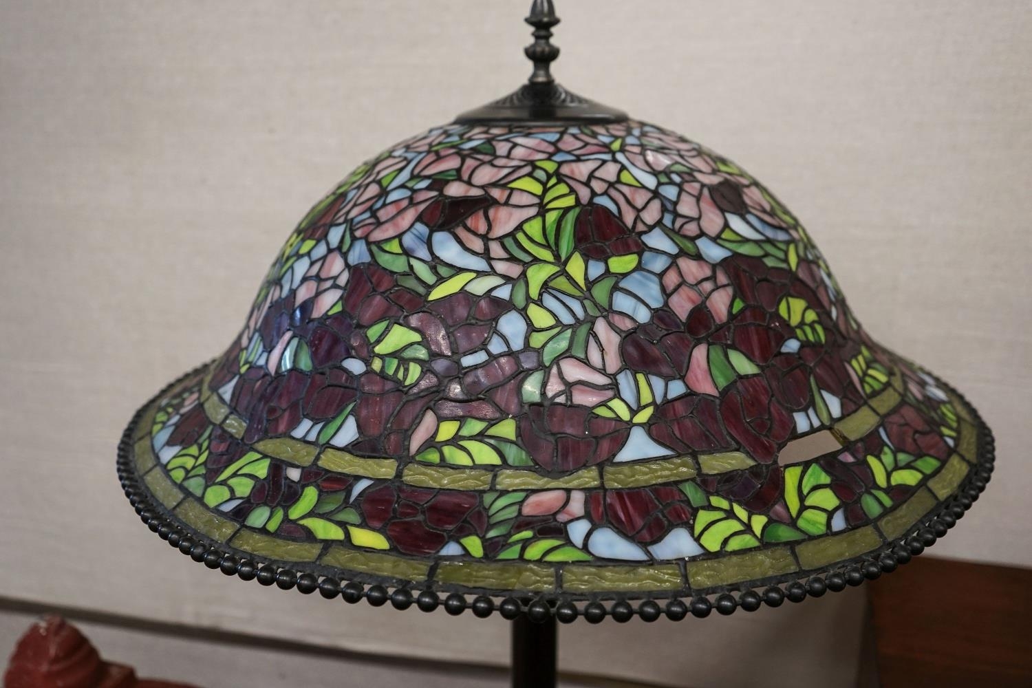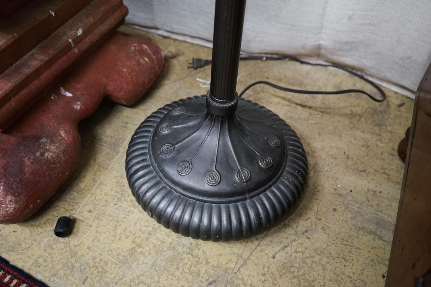 A bronzed finish Tiffany style standard lamp with shade, 160cm high, 59cm diameter