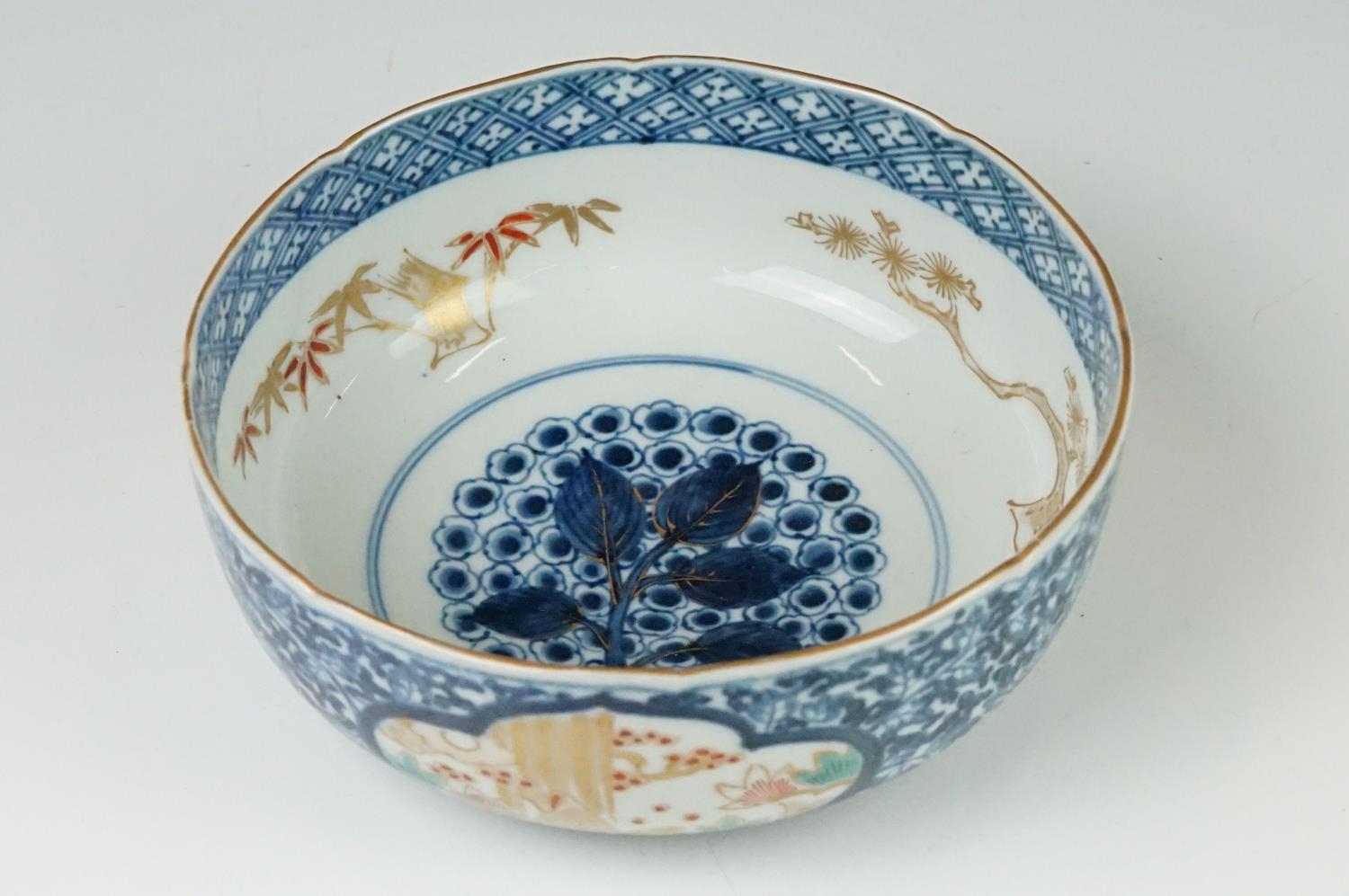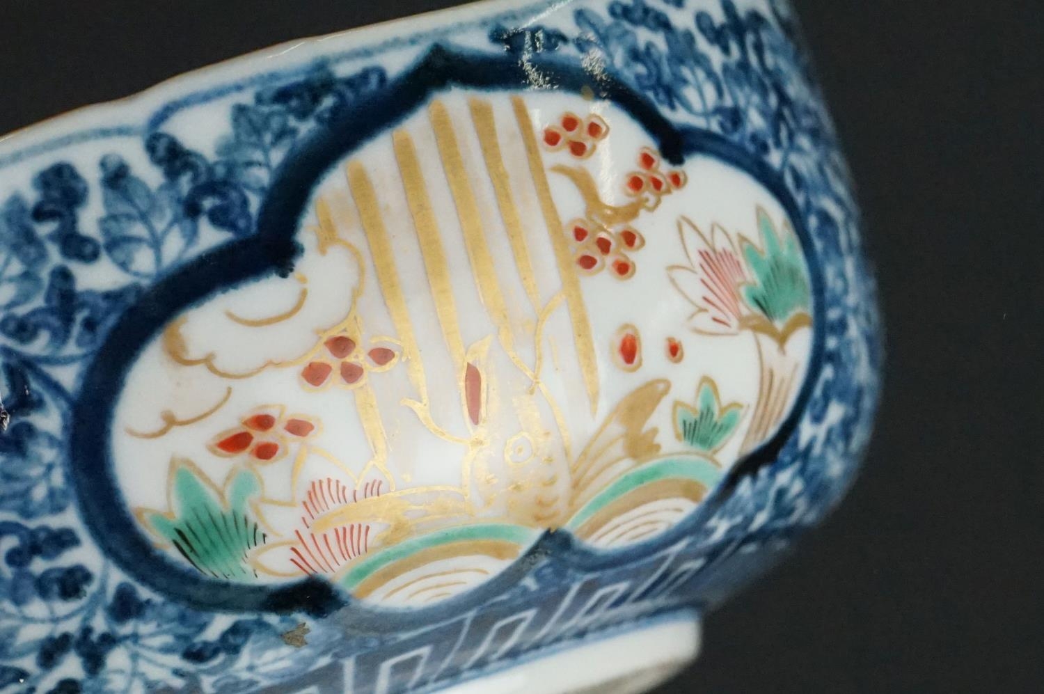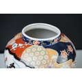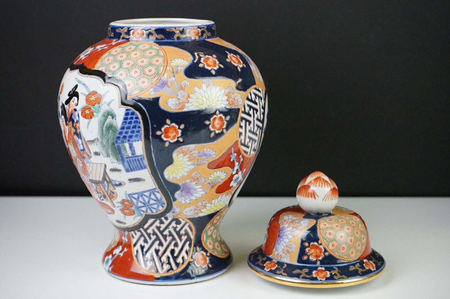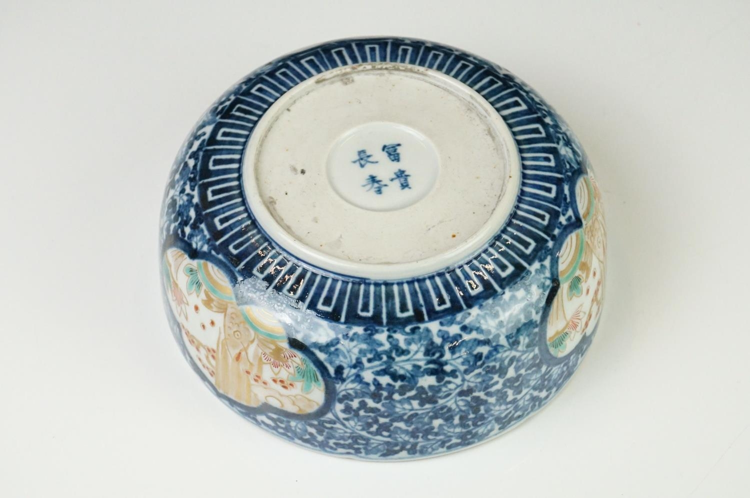19th century Japanese Arita Ware Bowl decorated with panels of fish within a river, four character marks to base, 16cm diameter together with a 20th century Japanese Ceramic Jar and Cover, 31cm high