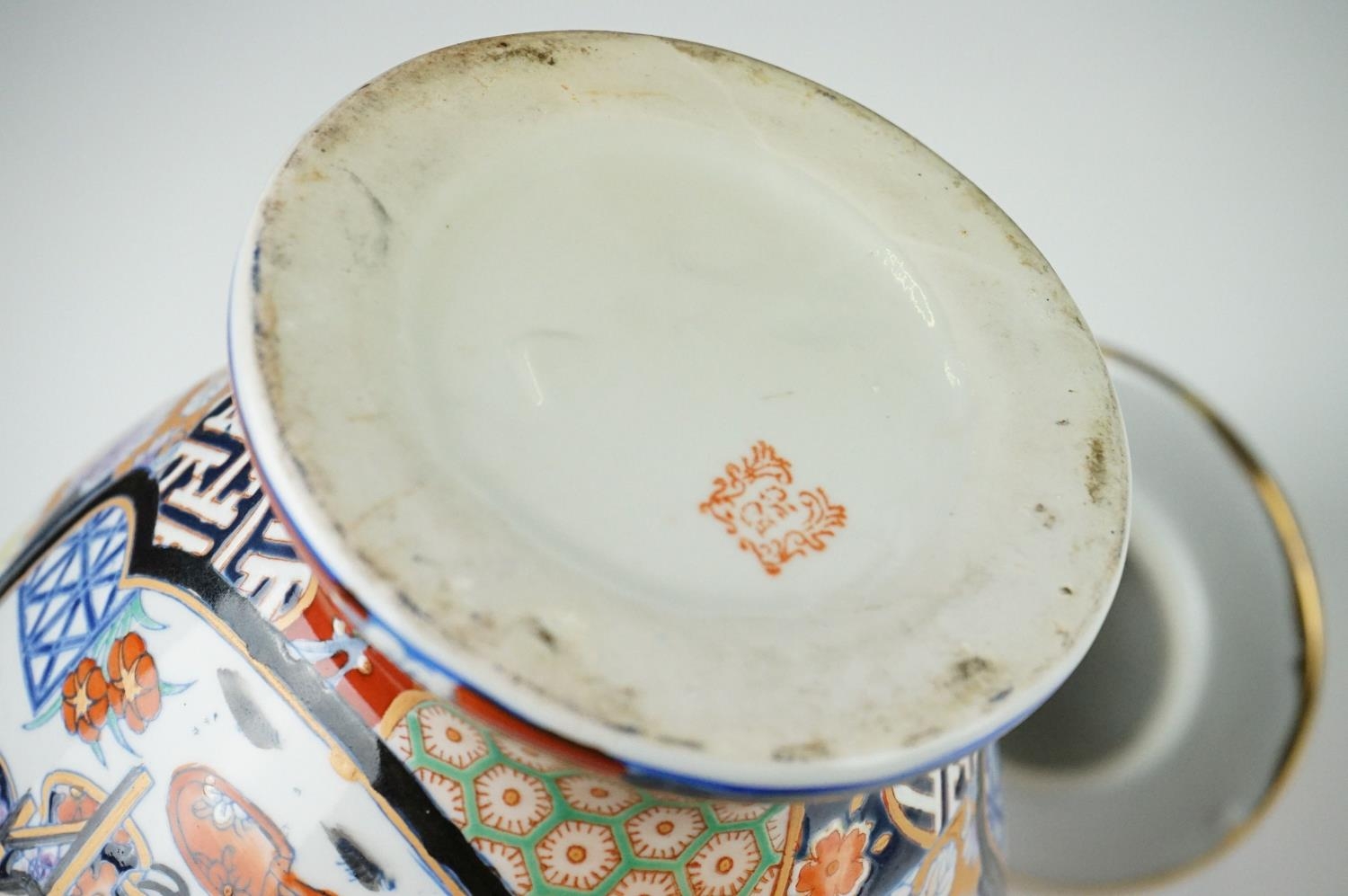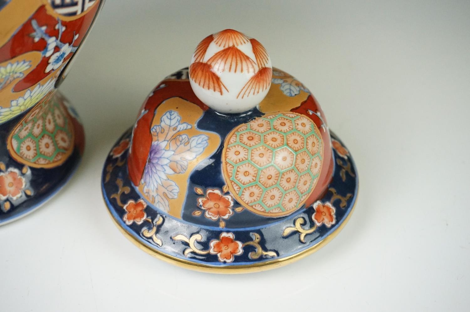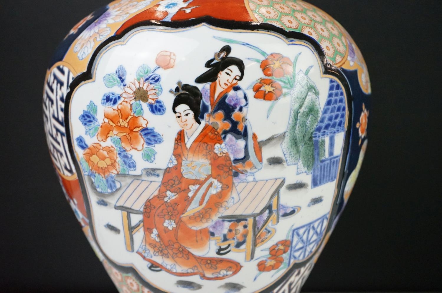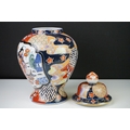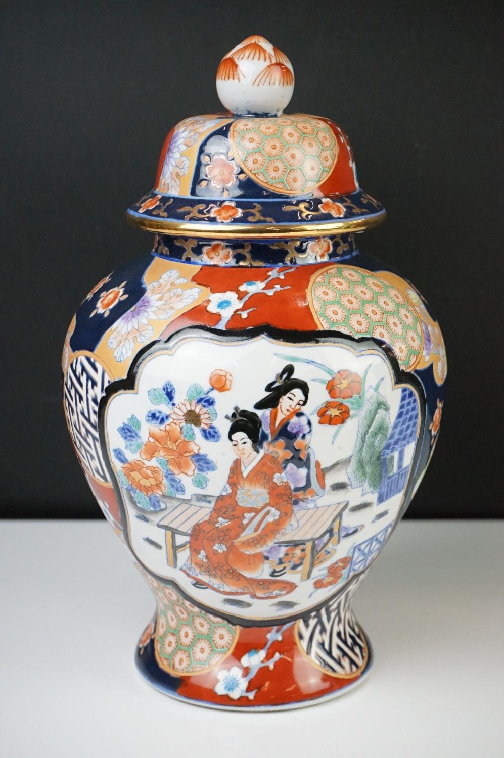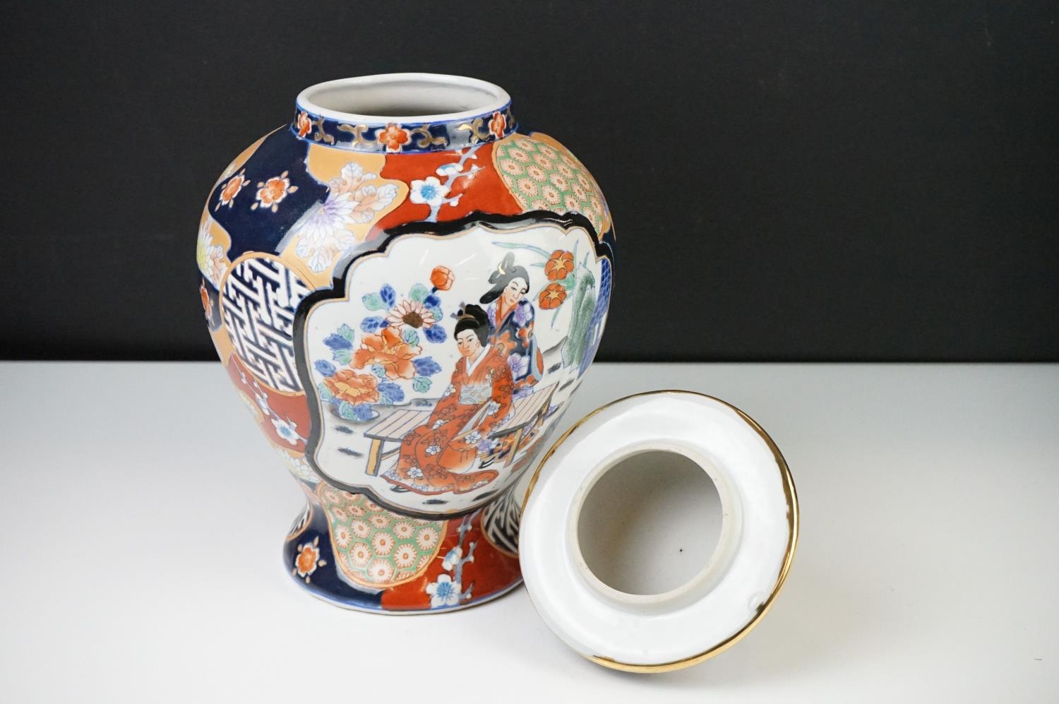 19th century Japanese Arita Ware Bowl decorated with panels of fish within a river, four character marks to base, 16cm diameter together with a 20th century Japanese Ceramic Jar and Cover, 31cm high