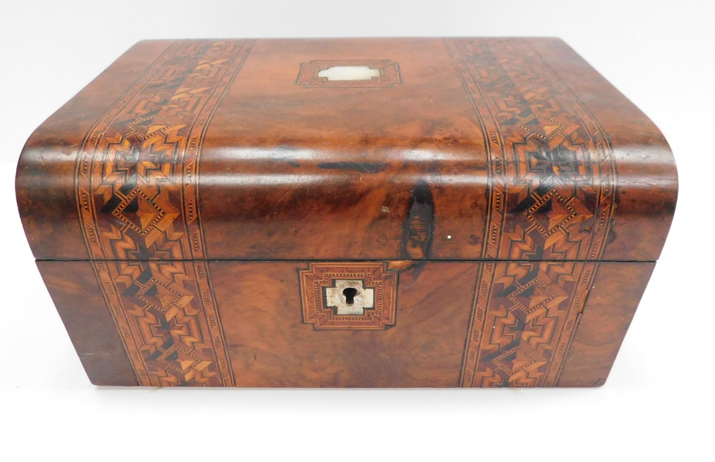 Wooden inlaid chest with mother of pearl, 11 x 8 x 5.5"