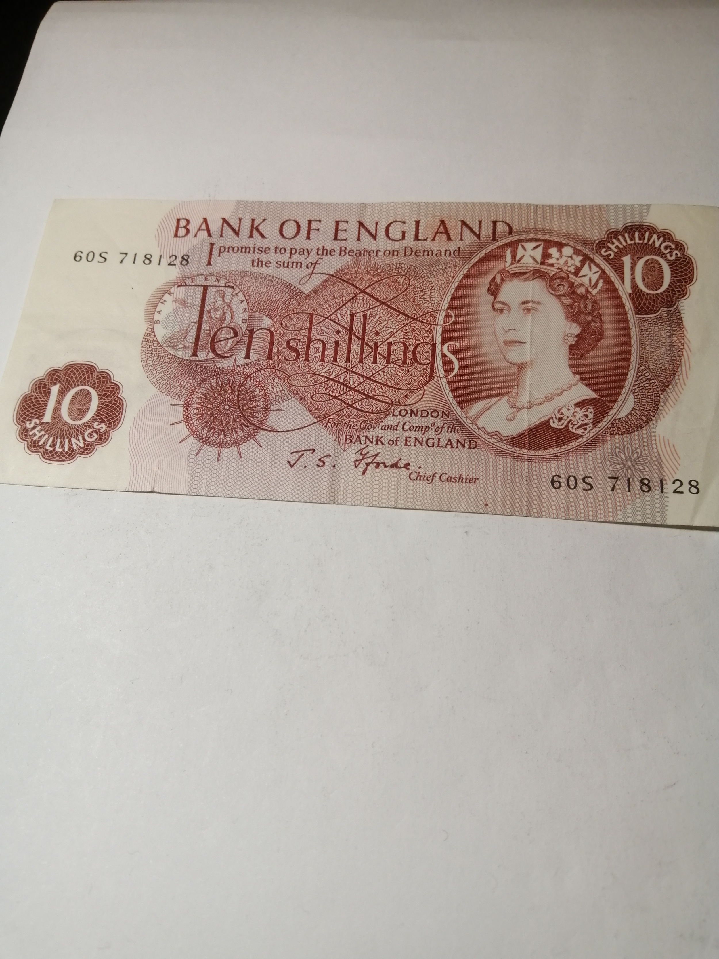 COINS : Elizabeth ll 10 shillings note in excellent condition