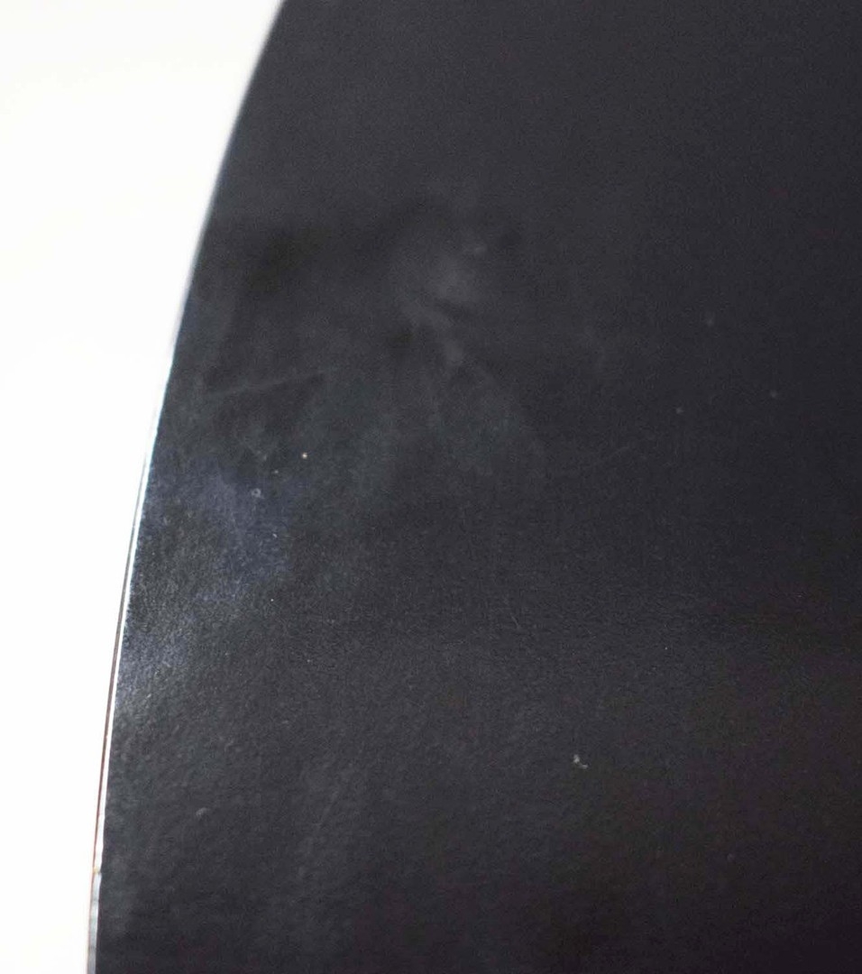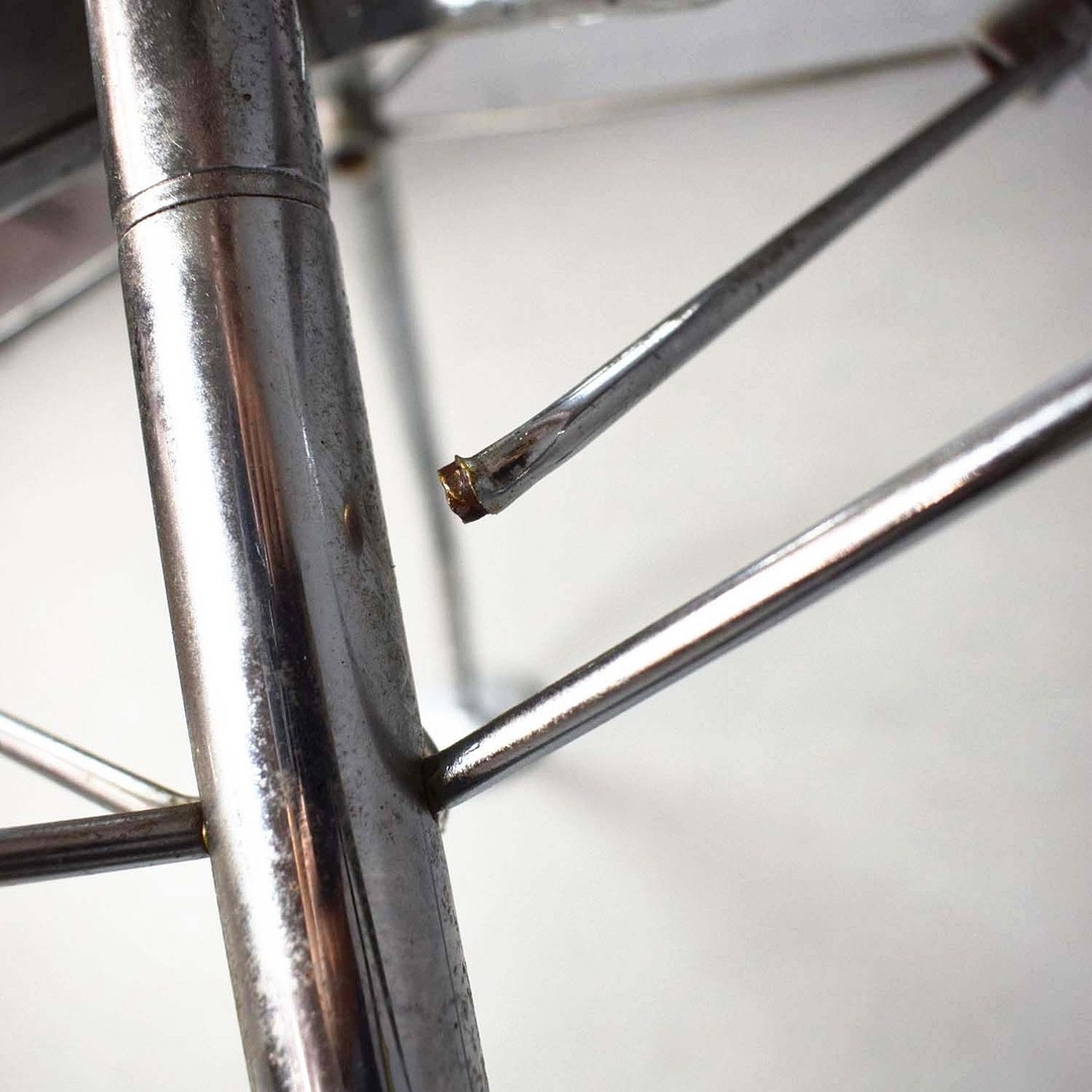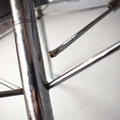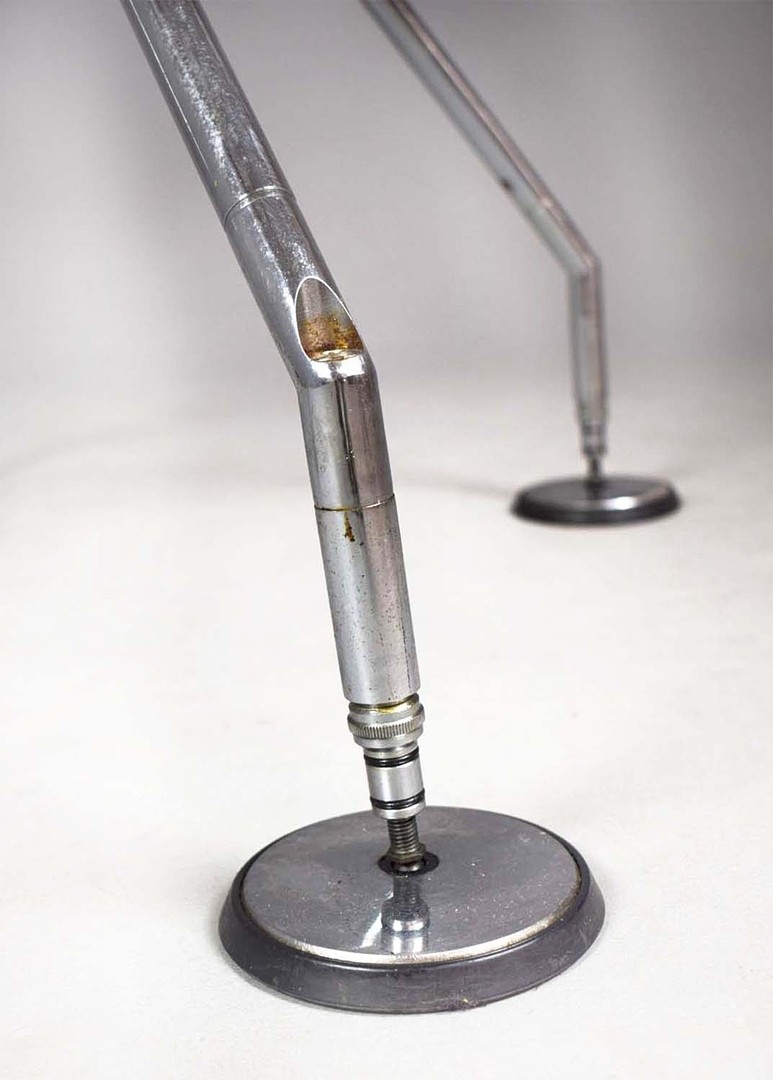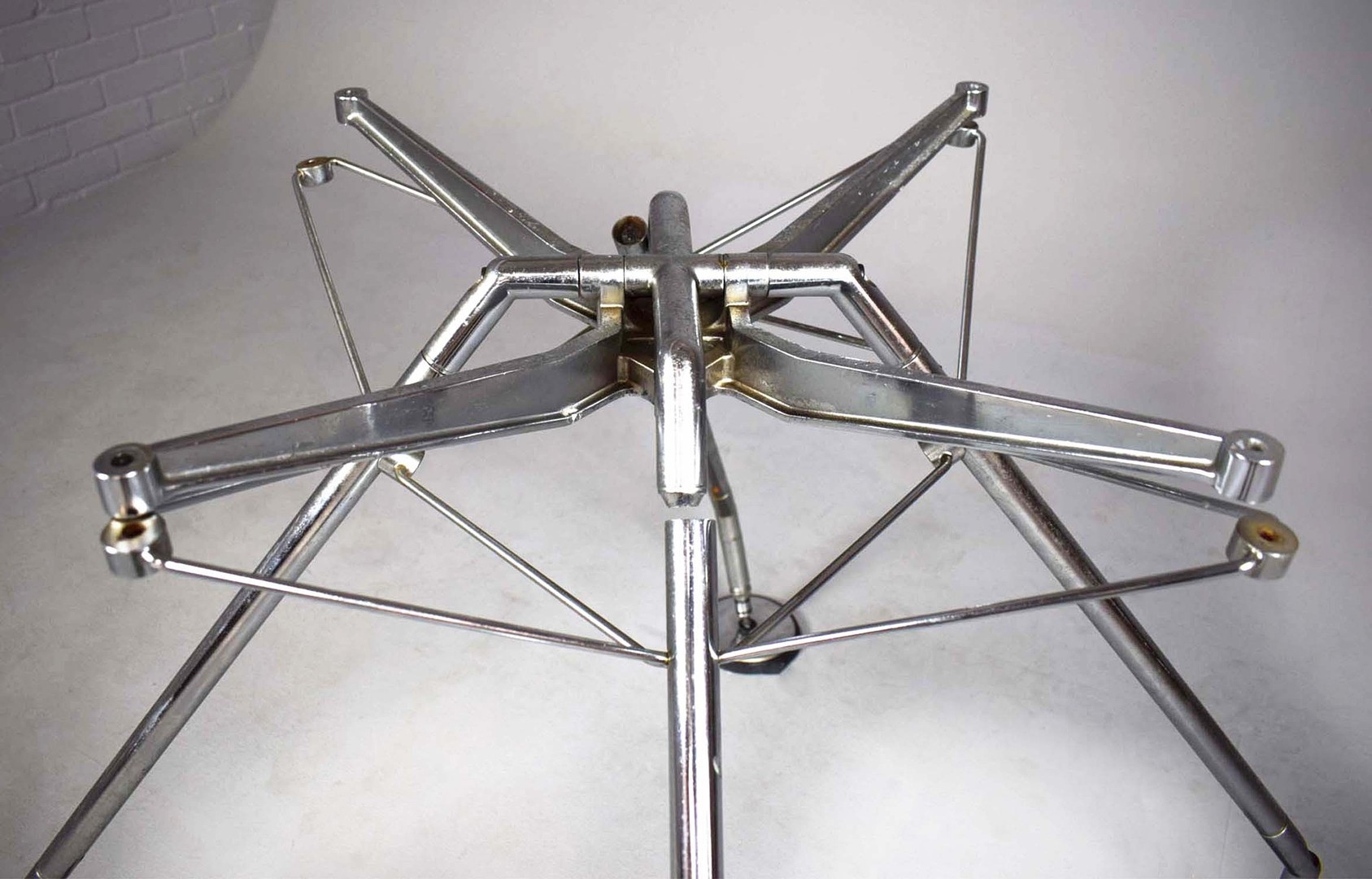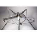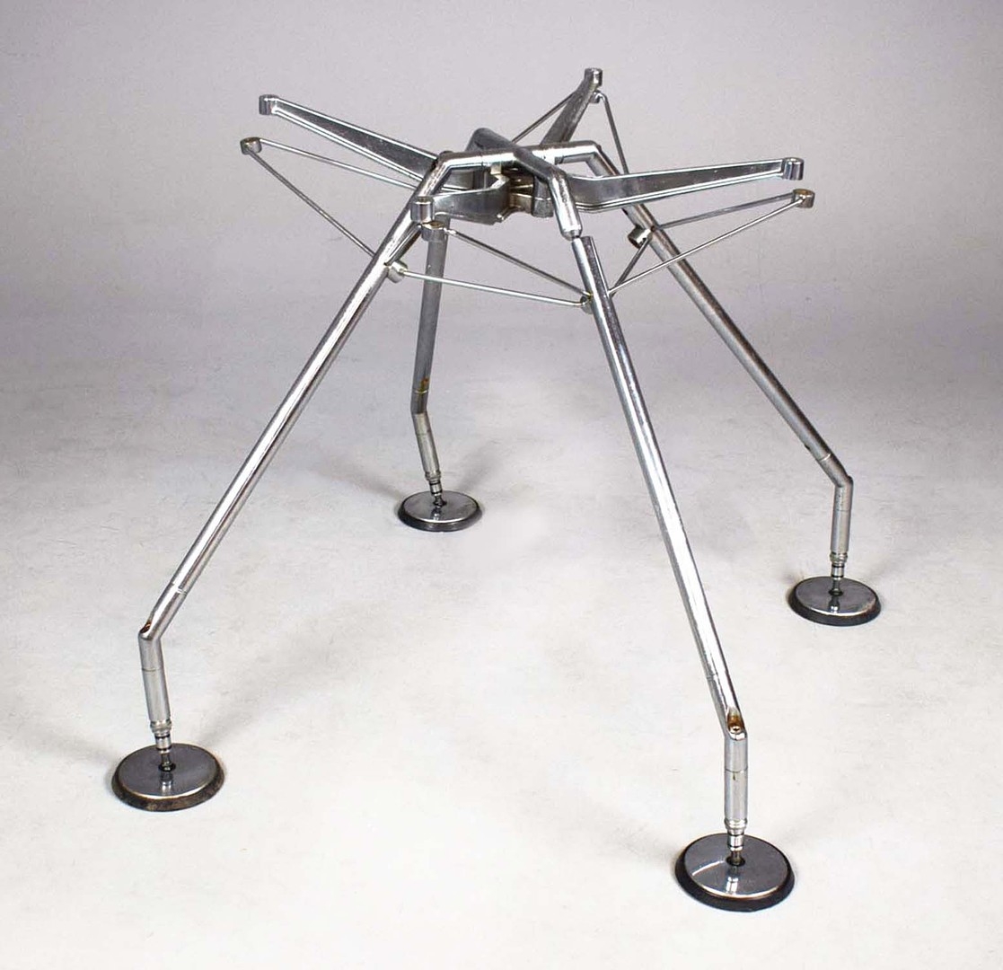 NORMAN FOSTER. TECNO NOMOS TABLE. by Norman Foster, with a dark wood round top on a splayed leg chromed steel base marked Tecno. 121cm rd x 75cm h.