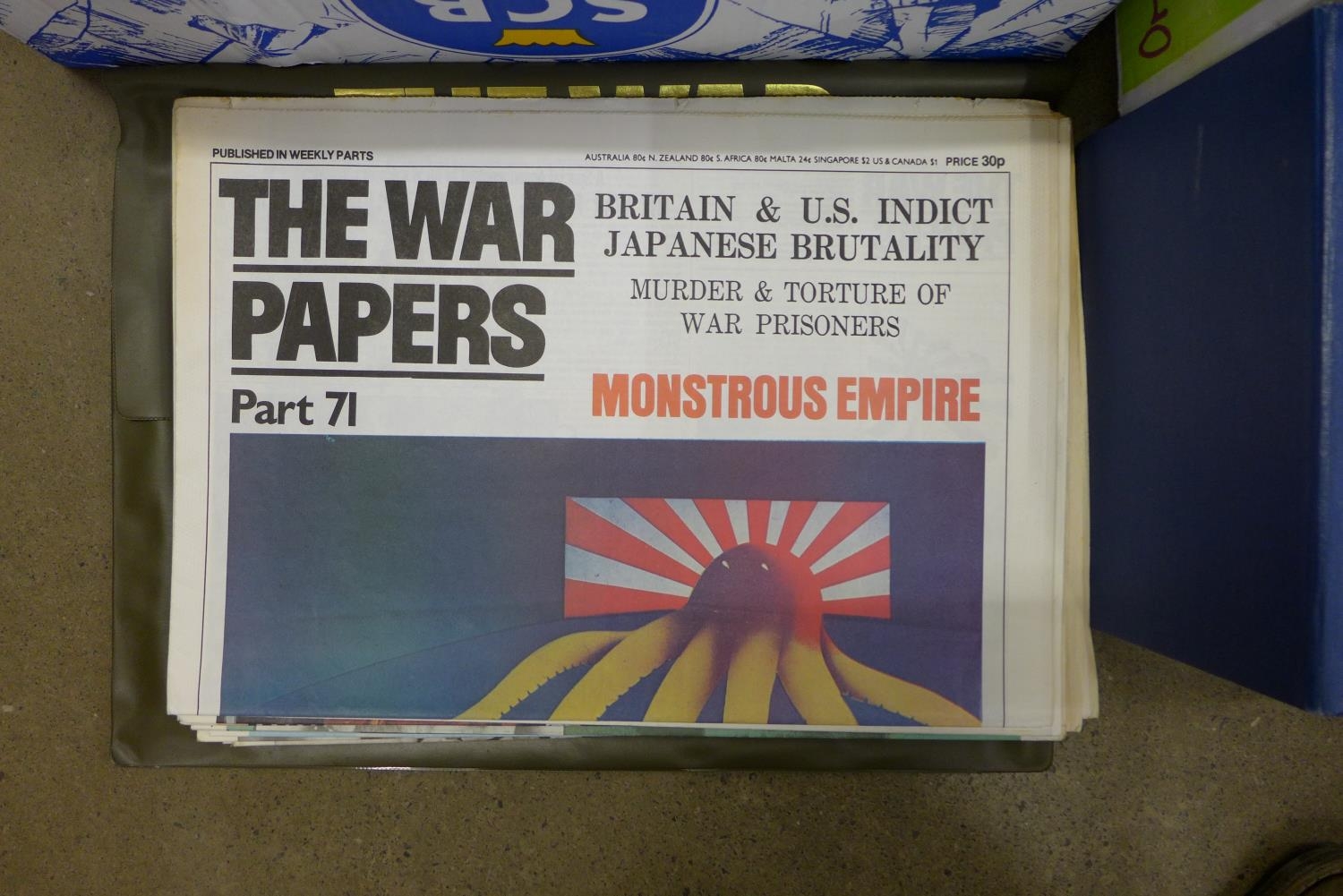 Two boxes of books; vintage motoring and the War Papers reproduction newspapers and Wings magazines in binders **PLEASE NOTE THIS LOT IS NOT ELIGIBLE FOR POSTING AND PACKING**