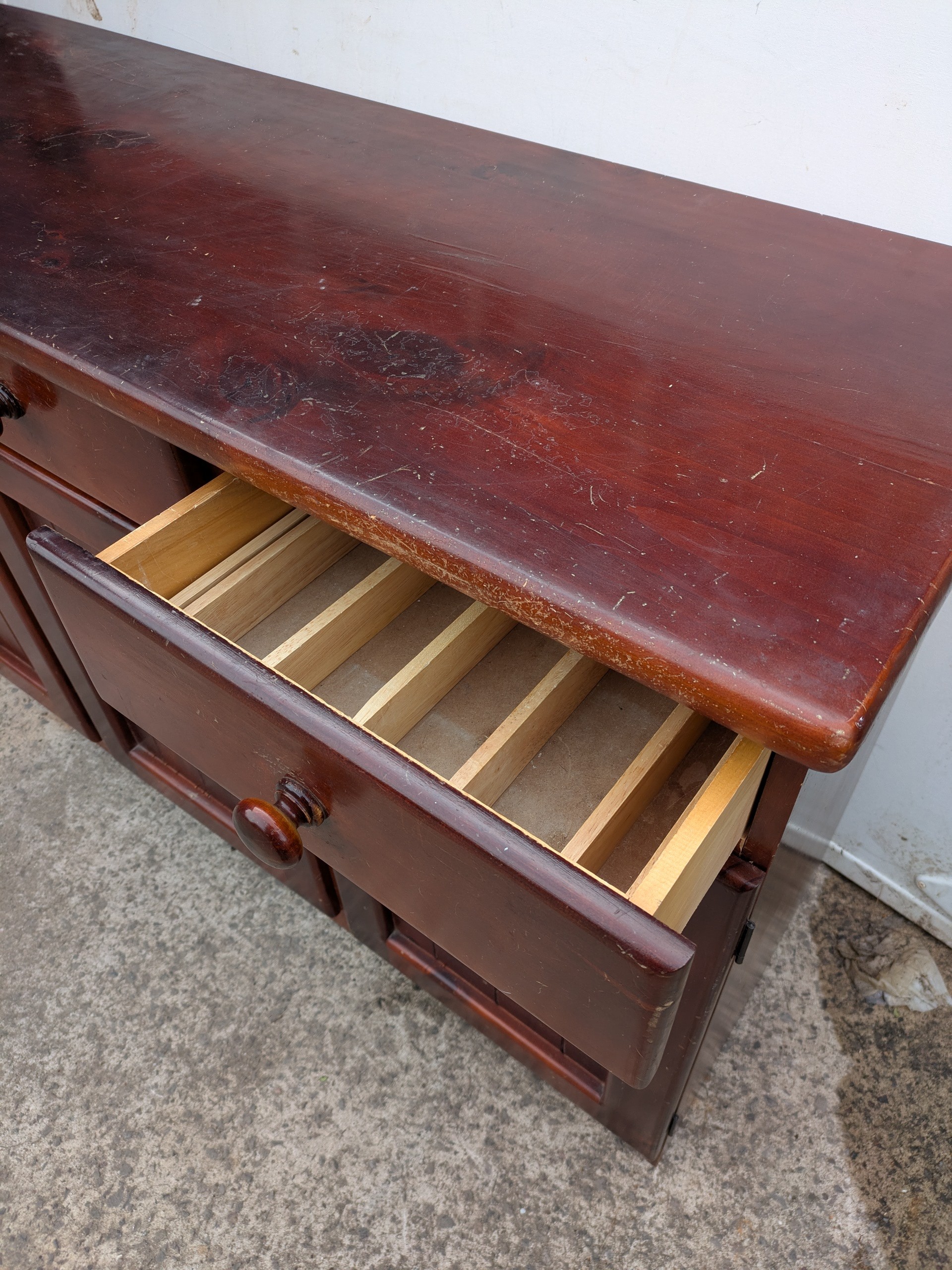 A pine side unit with 4 drawers and 2 cupboard spaces