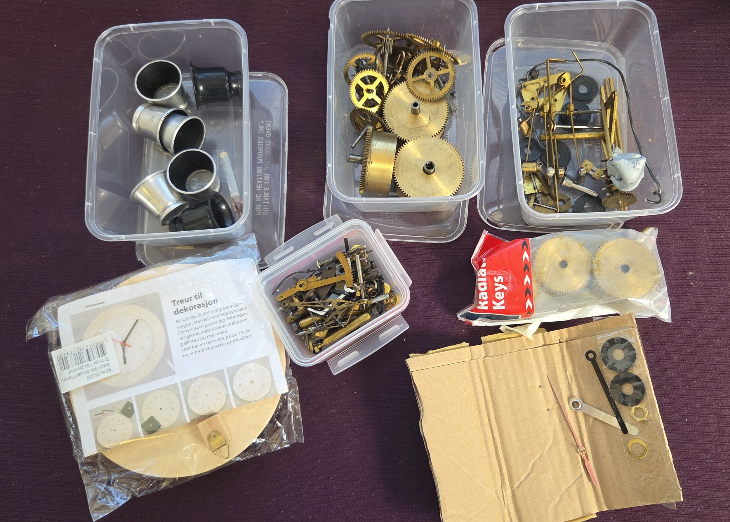 An Assortment of Horological Movement Components, Clockmaker's Tools, and a Hobbyist Clock Kit