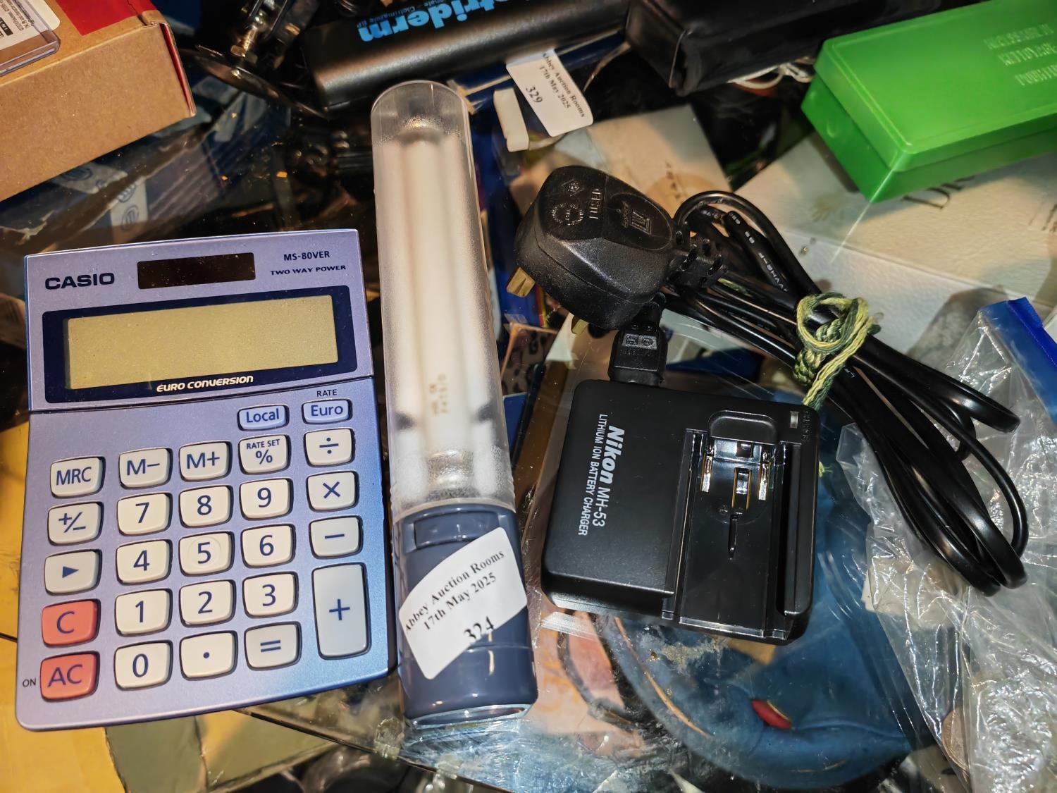 Calculator, Torch With Light And A Nikon Camera Charger