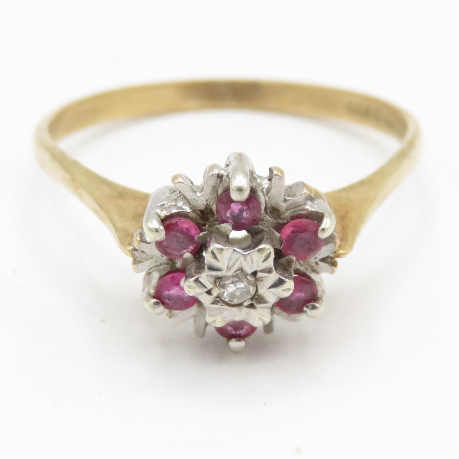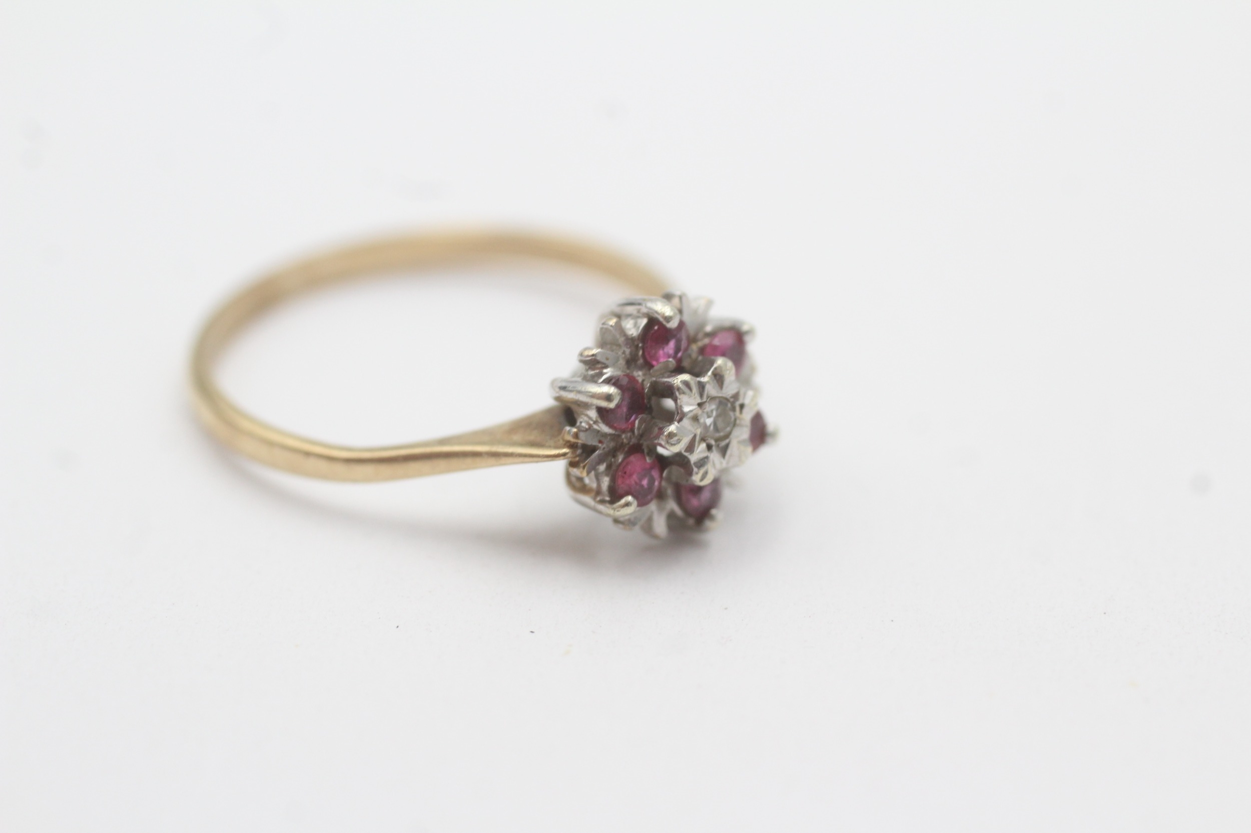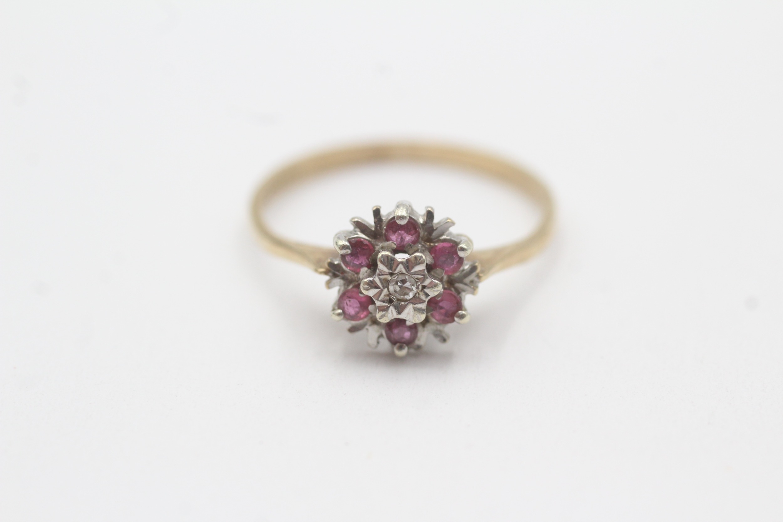 9ct gold ruby diamond cluster ring (1.9g) Size P