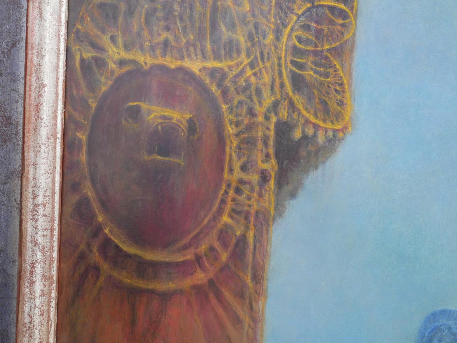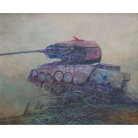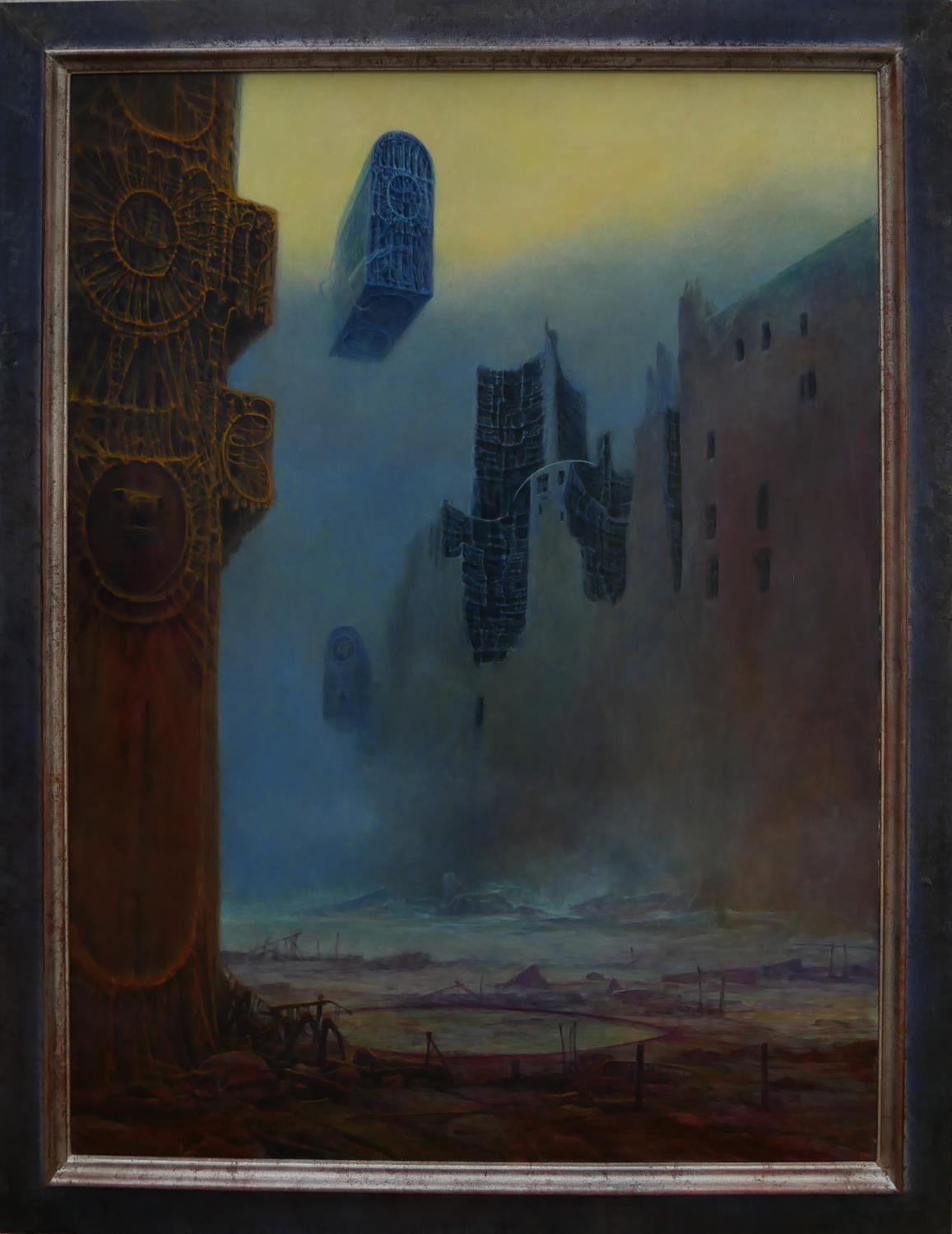 ZDZISLAW BEKSINSKI, 1929 - 2005, POLISH, OIL ON FIBREBOARD