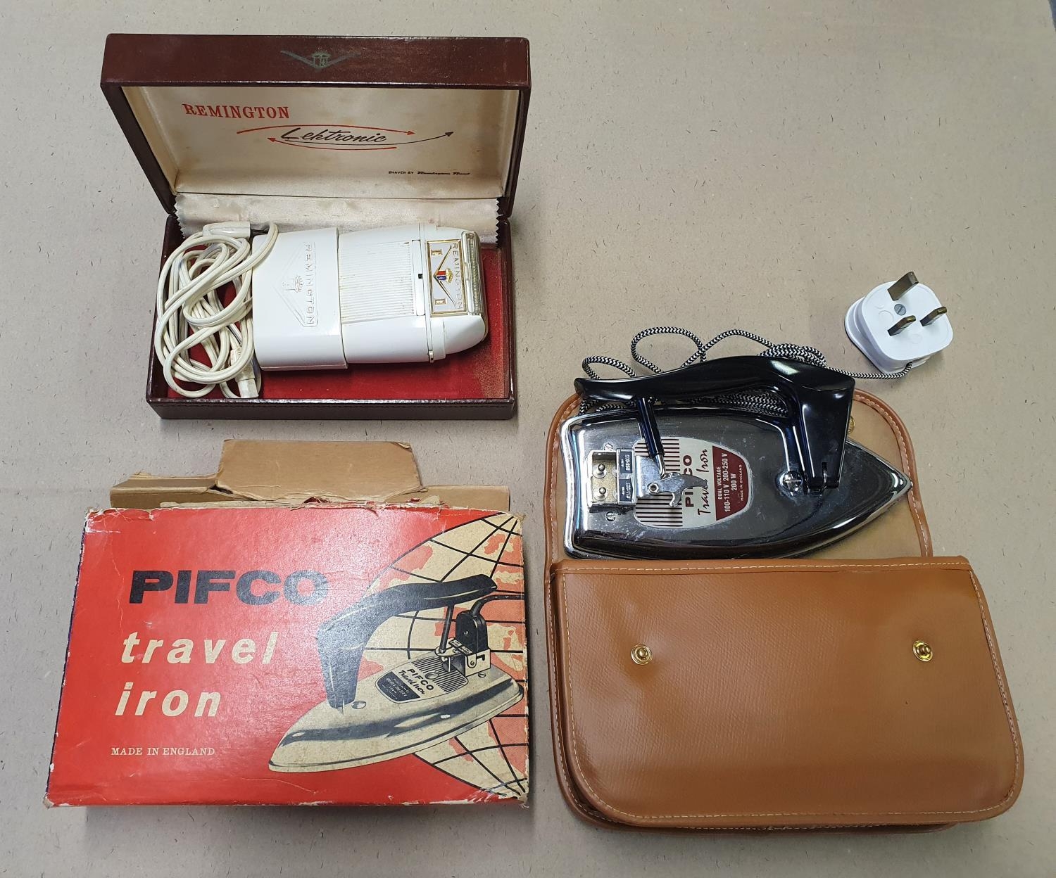 Boxed, vintage Remington electric shaver together with a boxed vintage "Pifco" travel iron (2),